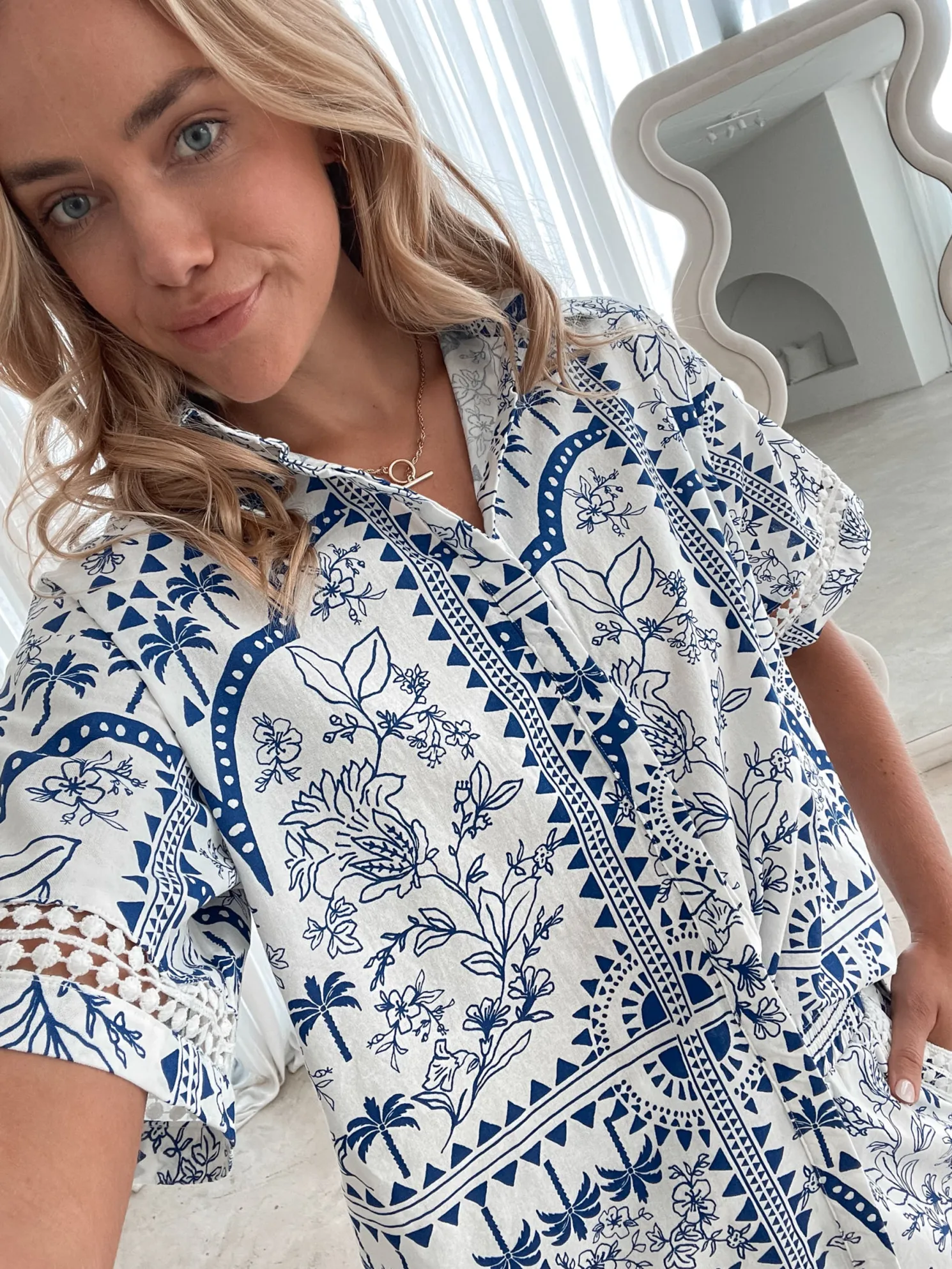 Aeris Shirt – Blue Print is exclusive to the Esther the Label Collection.