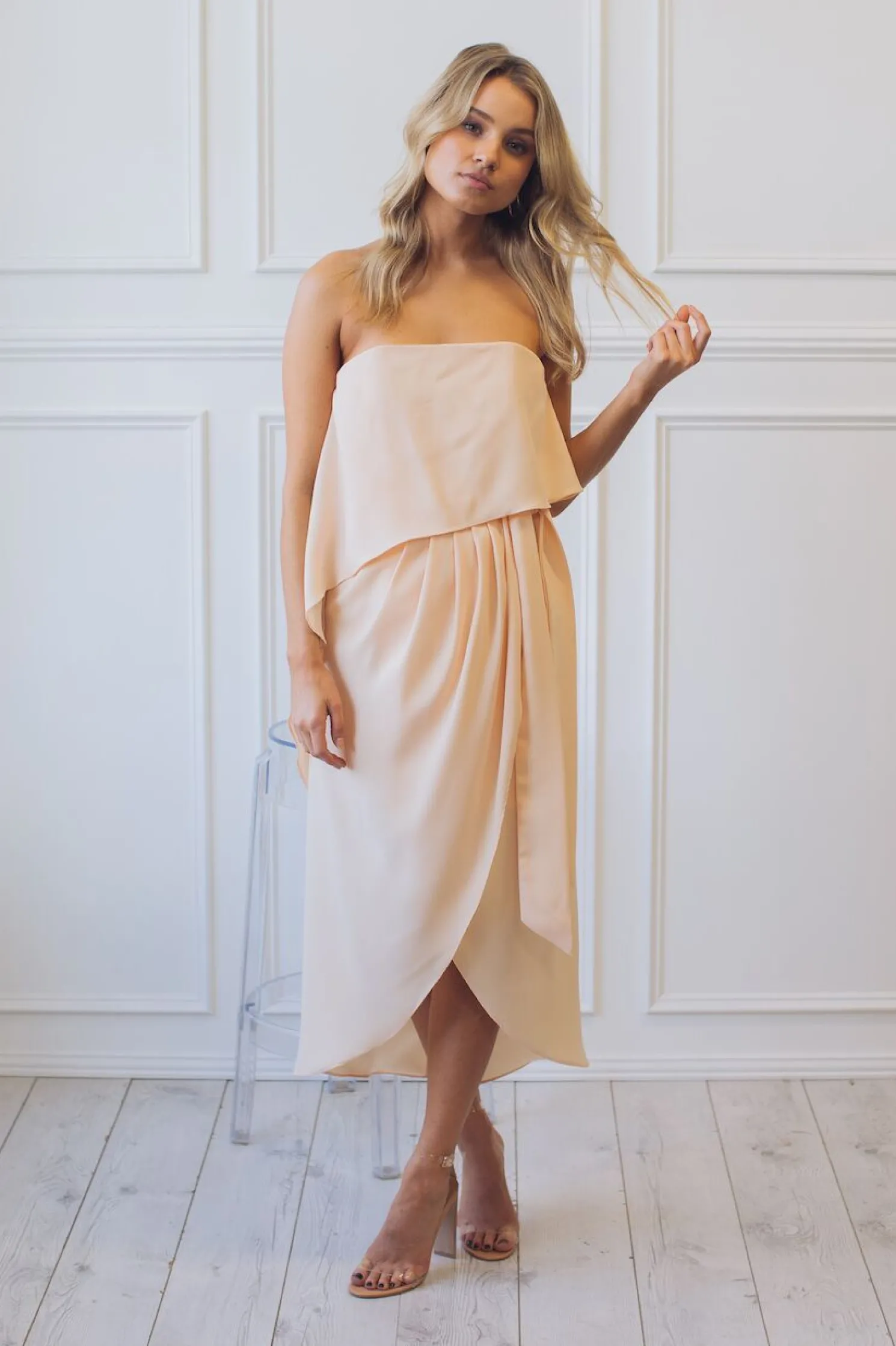 NOTE:TheFleur Strapless Dress – Apricotwill not be restocked, get yours beforeit’s gone.