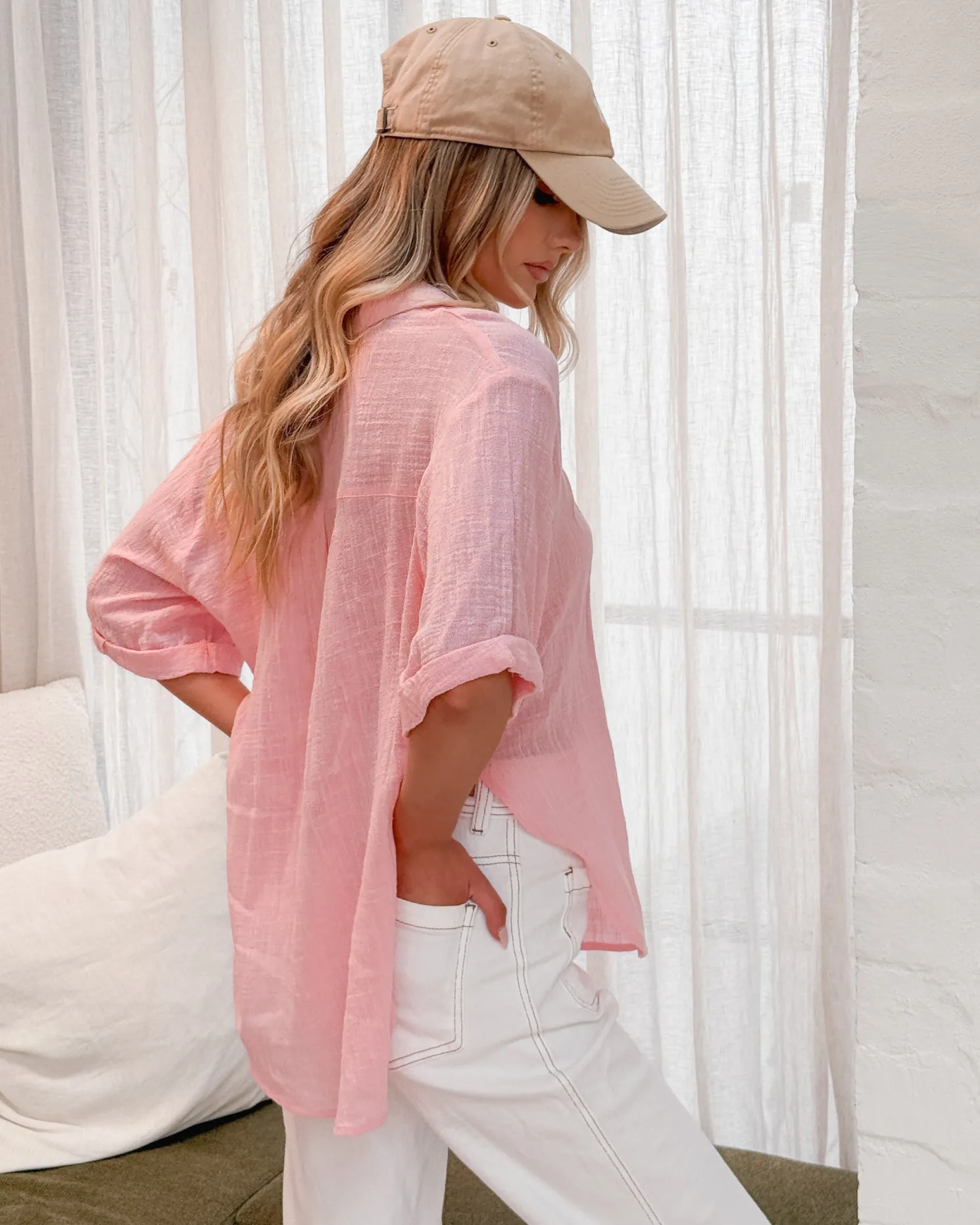Our Fraise Top is a cute pink tone. It’s a gorgeous medium-weight linen material in a relaxed fit that champions breathability and ease. Throw this on as a beach cover, tucked into your fave pair of denim or tied at the front and paired with a leather skirt. The v-neckline and relaxed fit make this ideal for maternity wear and those hot summer days to come.