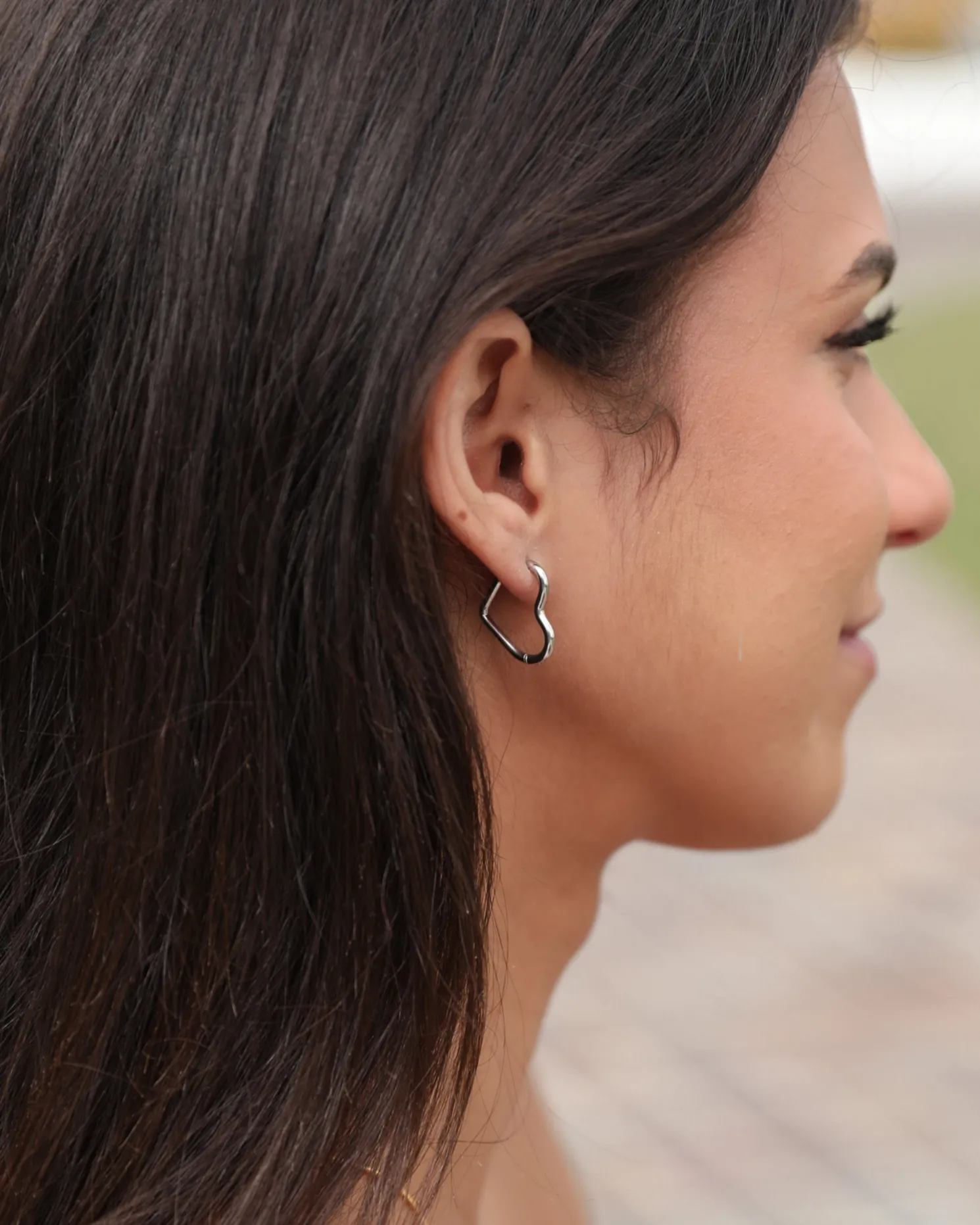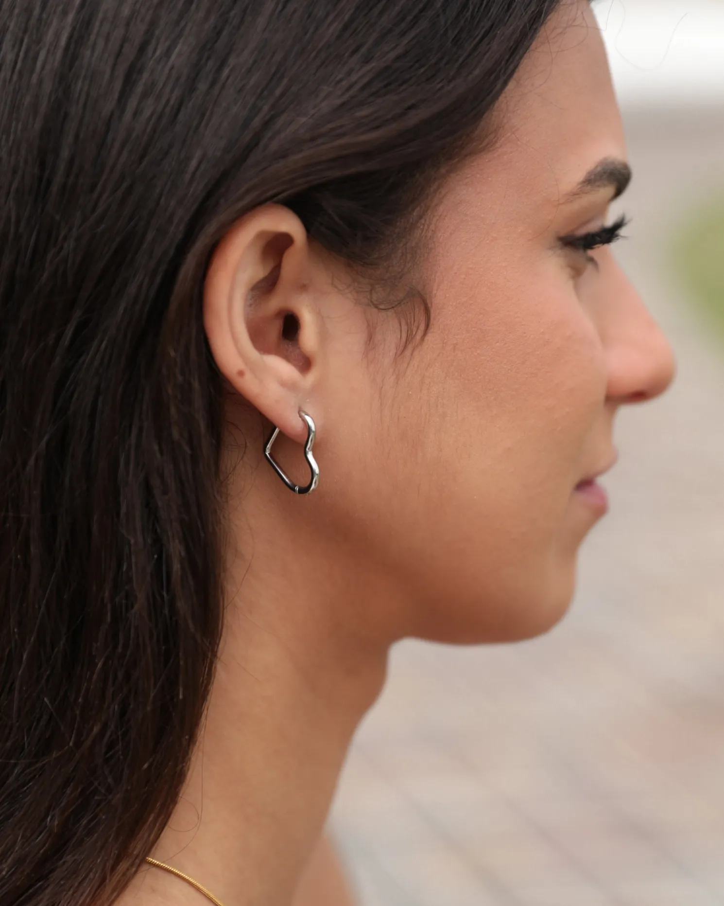 Our Helia Earrings come in a silver colour. A radiant expression of love, these pieces are designed with a heart shape. For a sophisticated vibe that lets these shine, style with a slip dress and natural makeup!