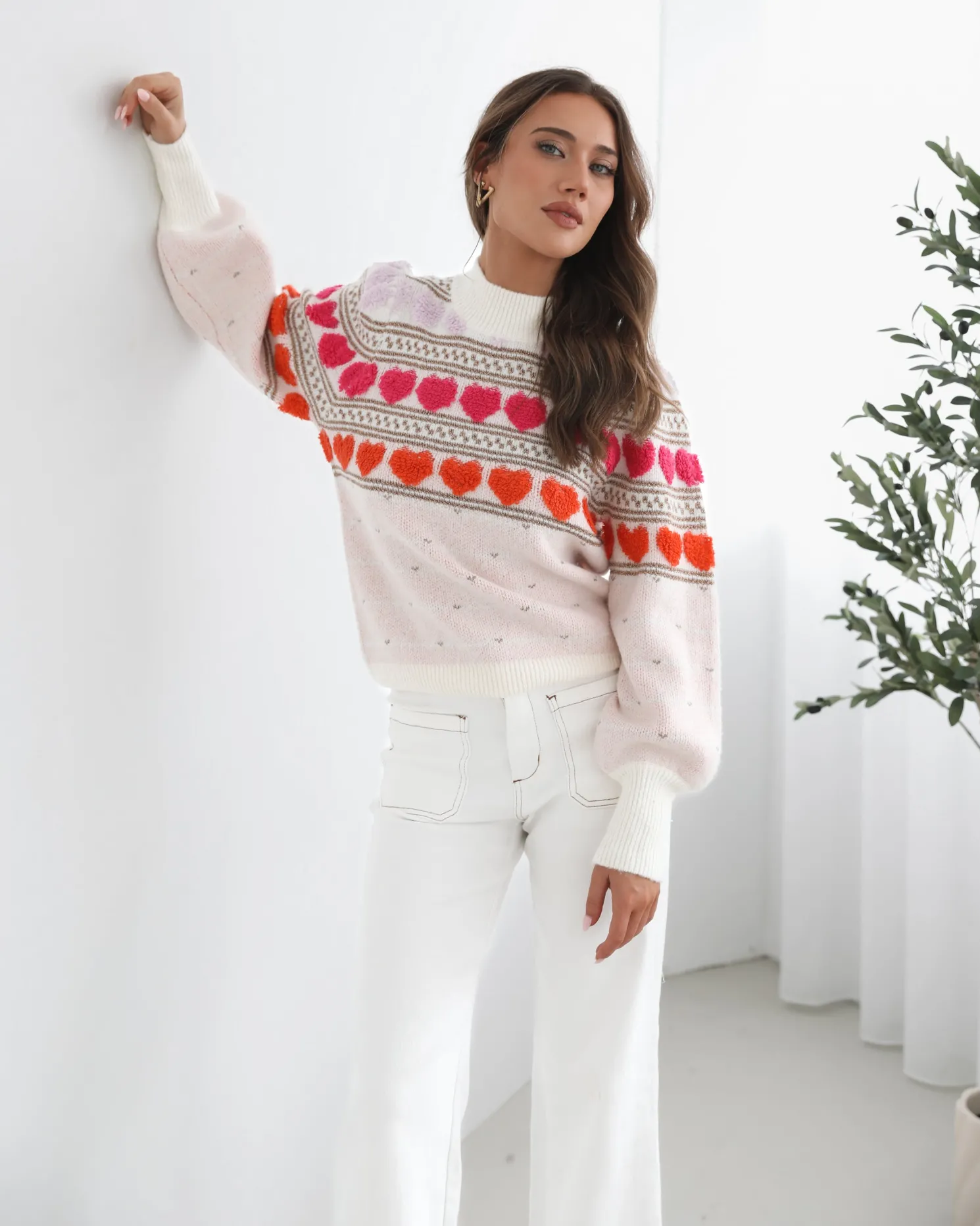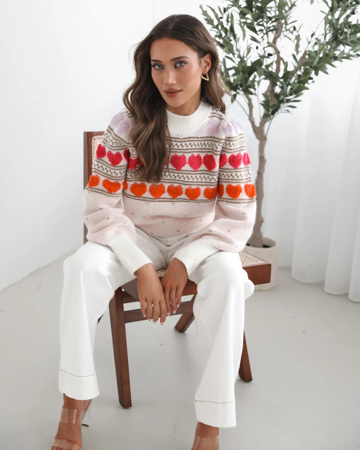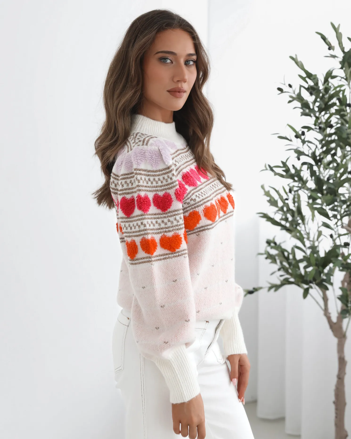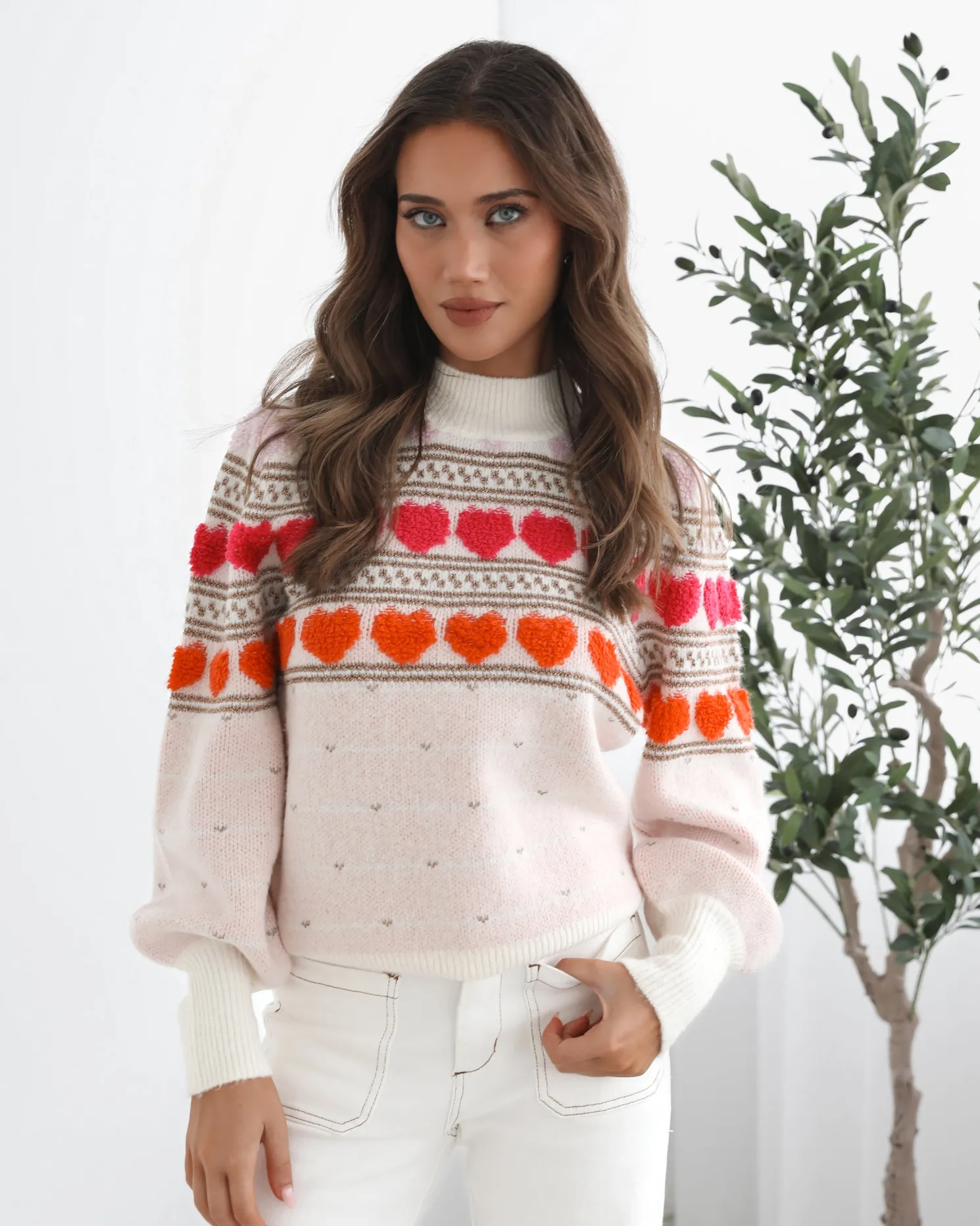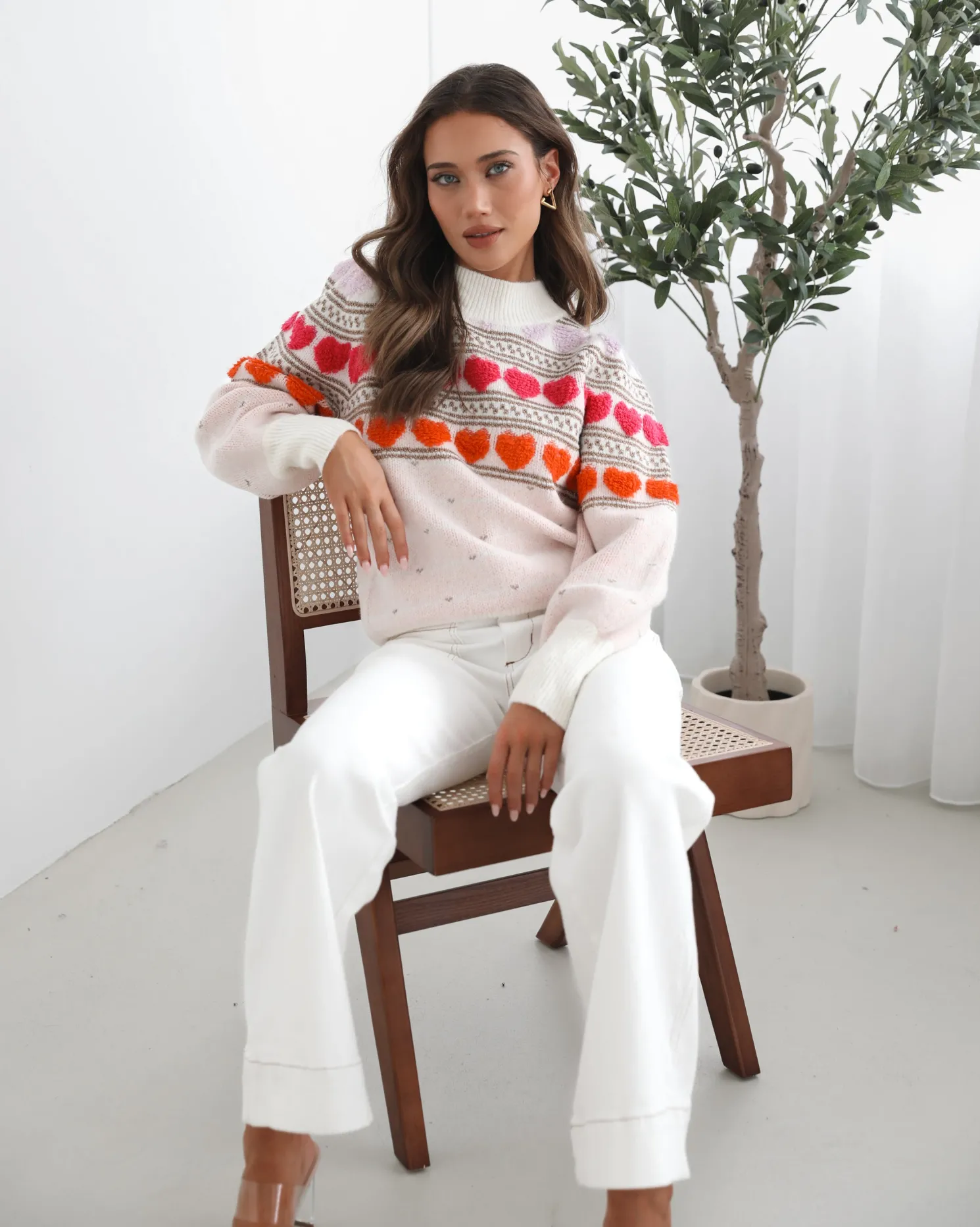 Our Naila Knit comes in a multi toned print. Be eye-catching in this knitwear that adds a pop of personality to your cold season look with its lovely pattern, semi-high round neckline, long sleeves with cuffs and relaxed fit. Wear it with leggings and slip-on sneakers for a more casual, cosy ensemble!