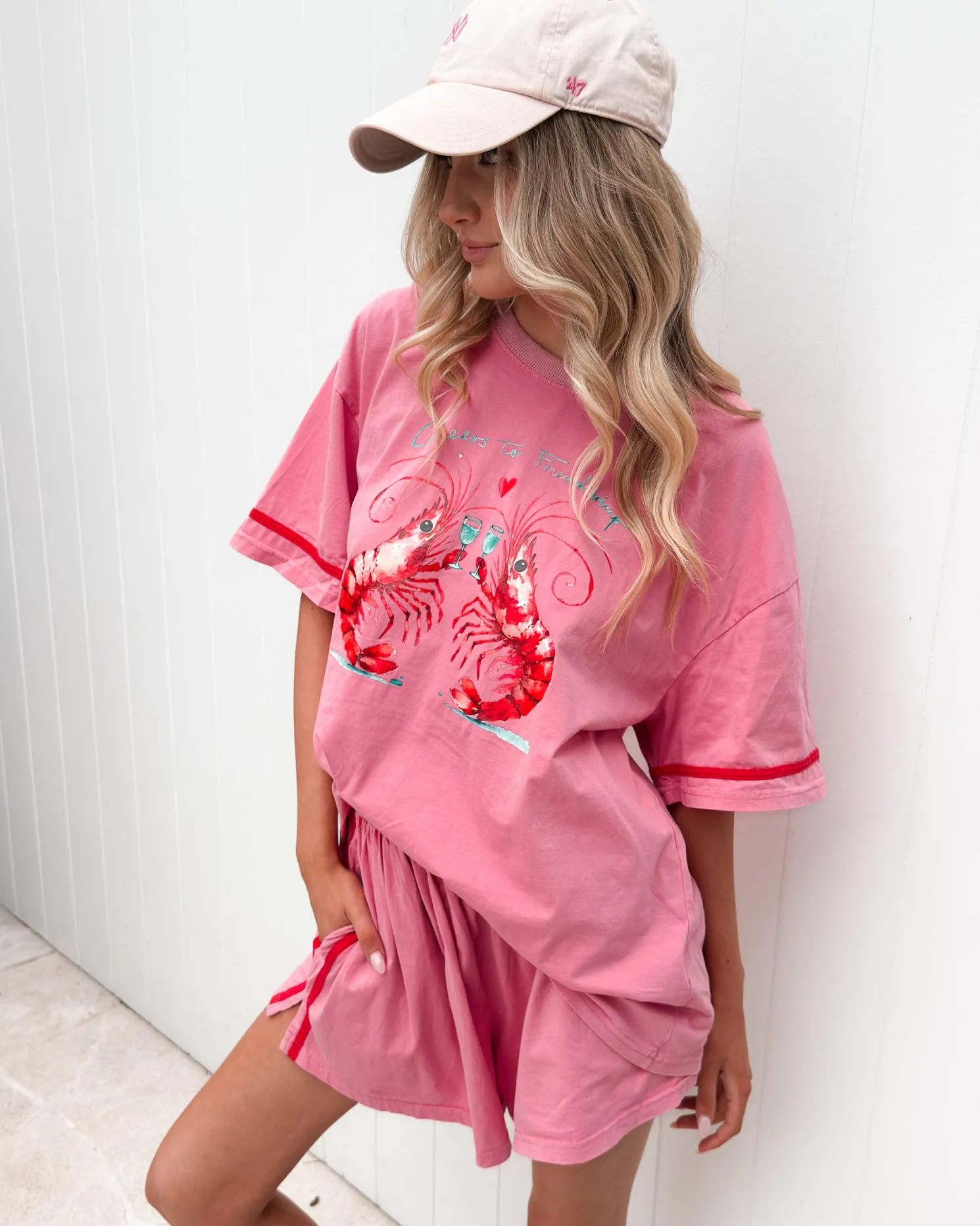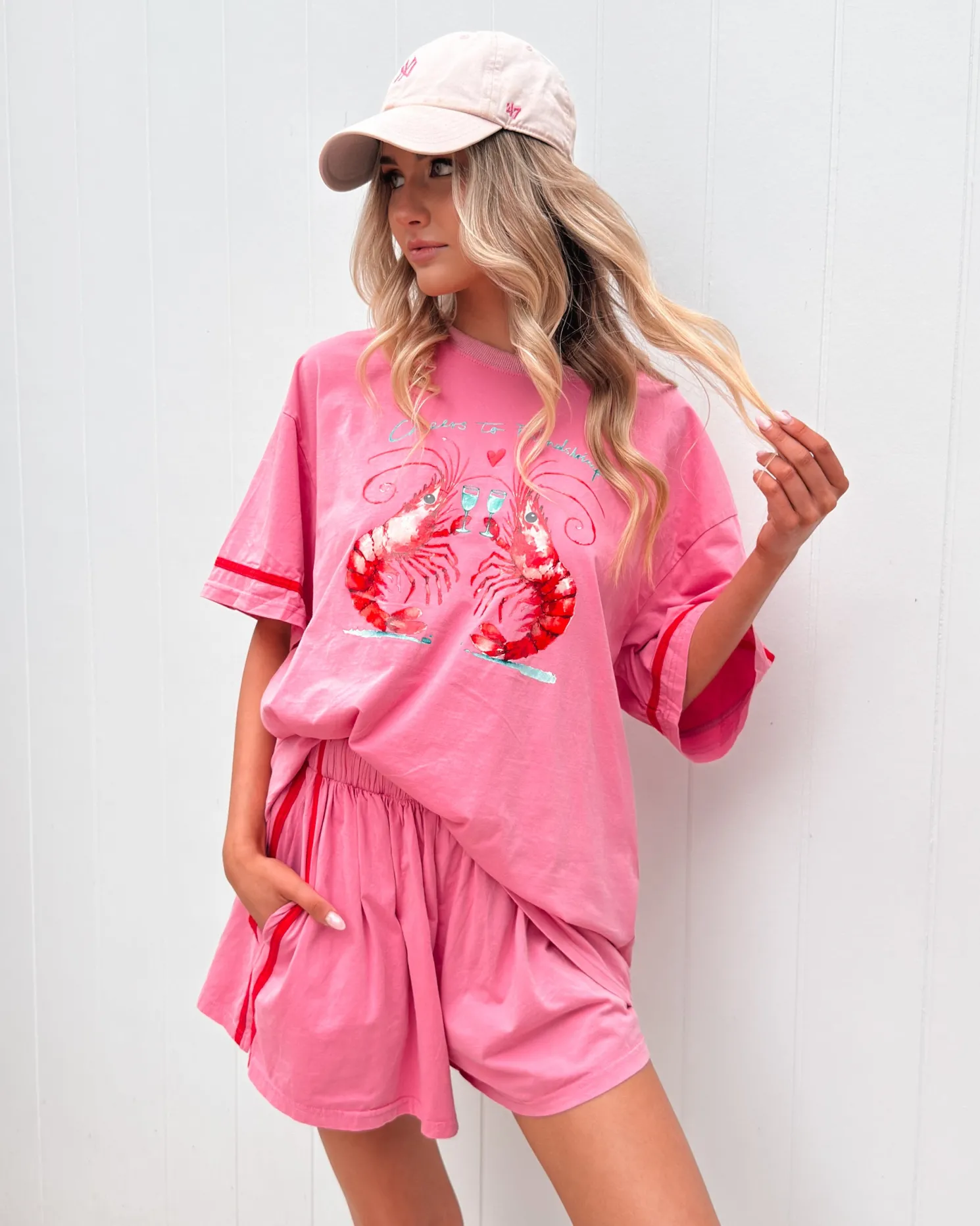 Our Roswell Shorts come in pink and red tones. Sunny days just got a little more fun with this piece that features a high-waisted fit and thigh length hem. Complete your look with our Roswell T-Shirt!