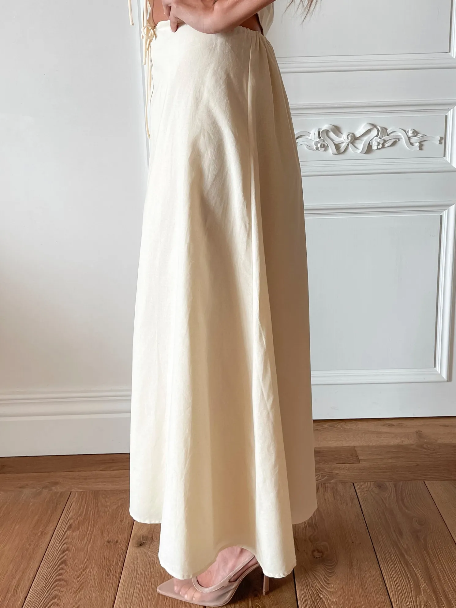 - Key Features: High-waisted. A-line silhouette. Maxi length hem