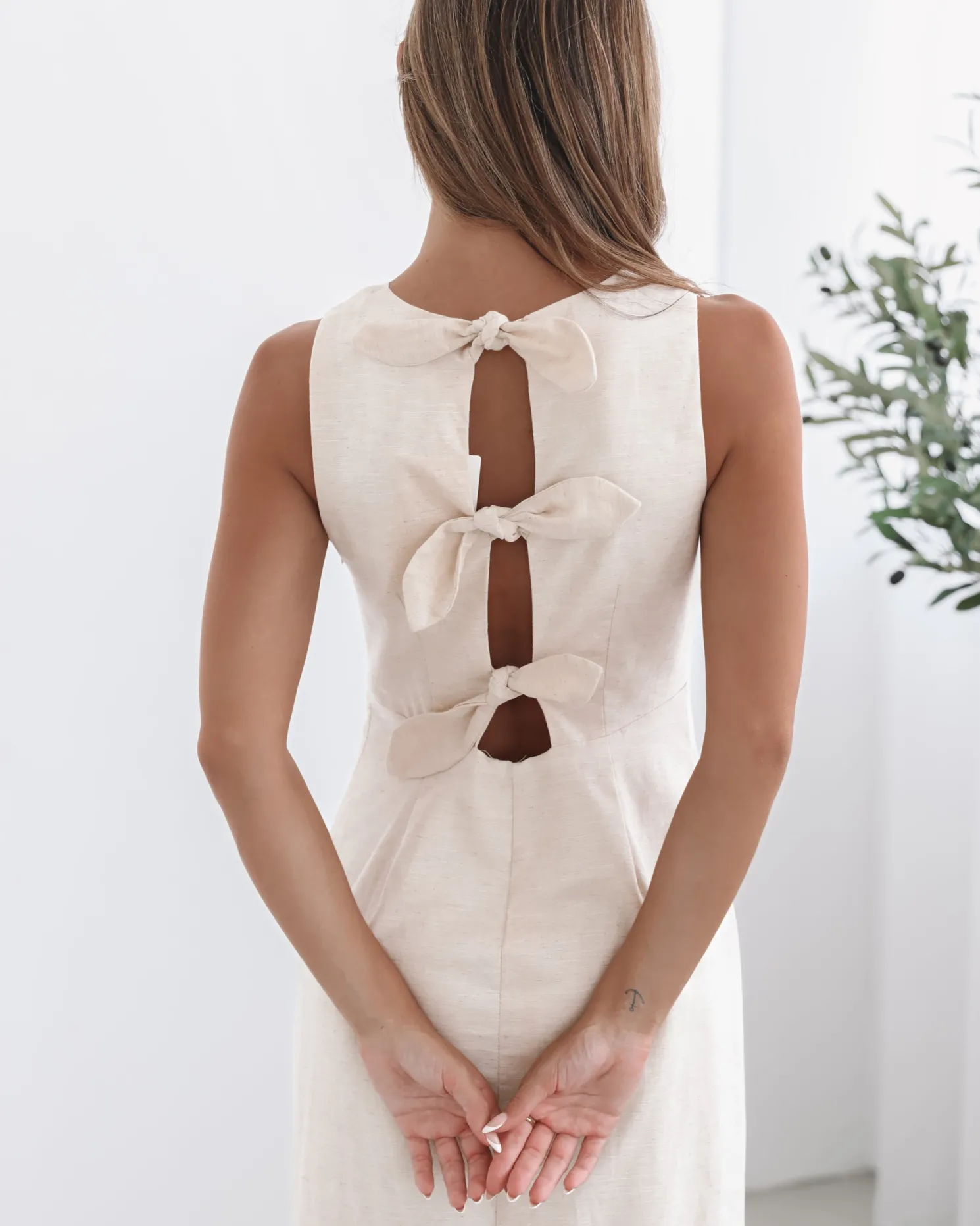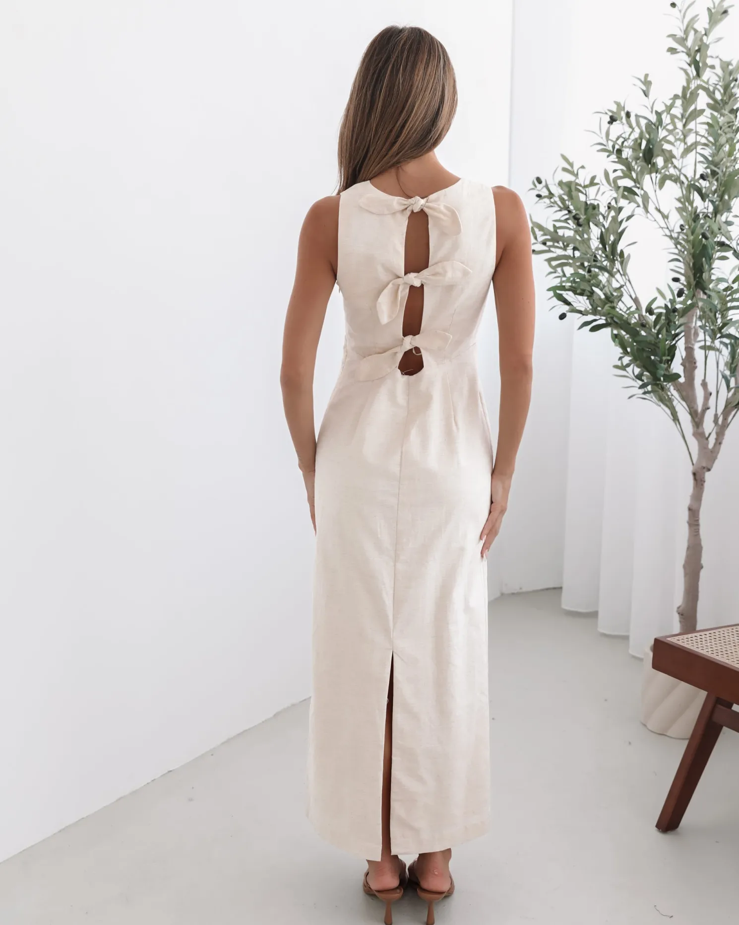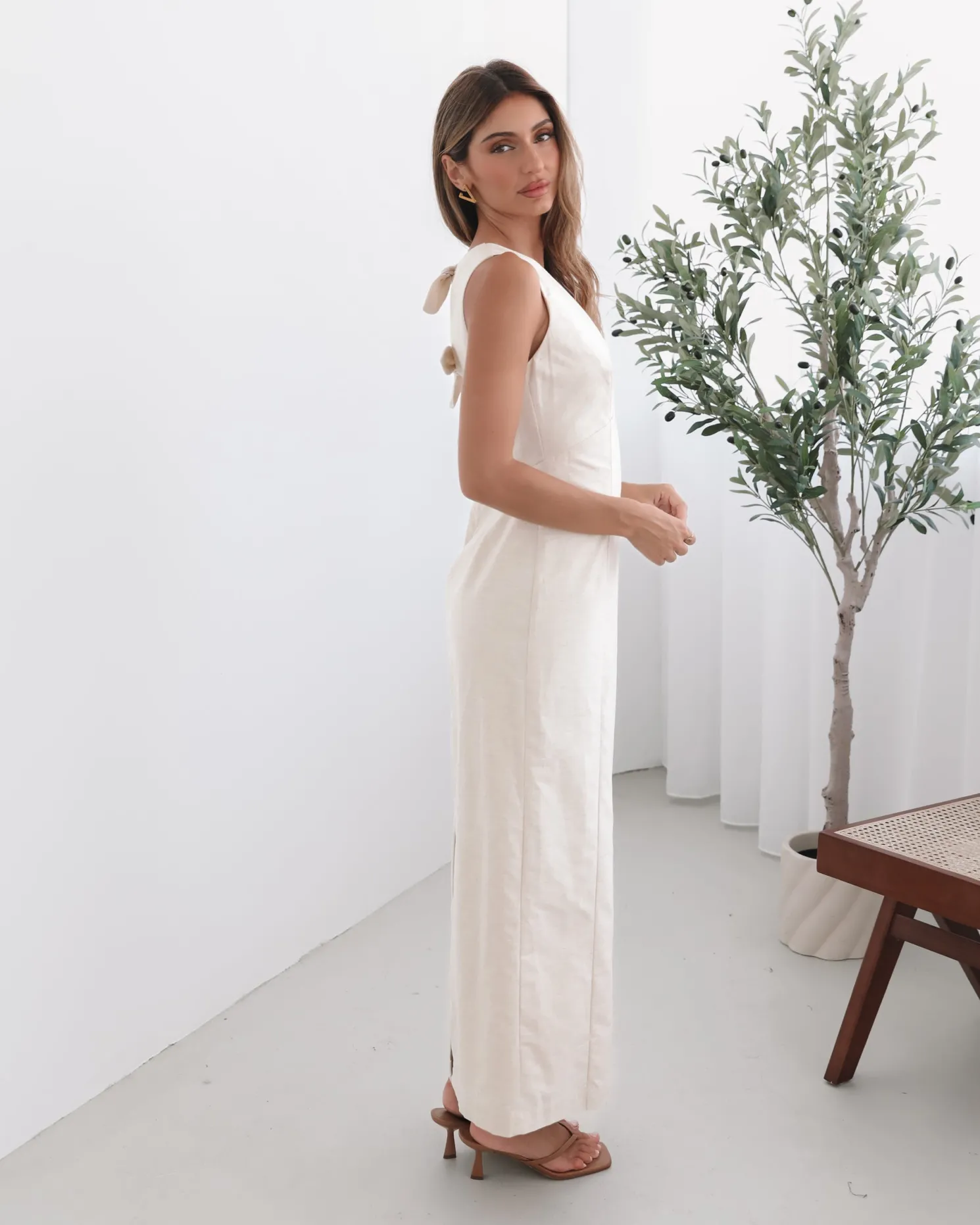 Our Abriana Dress comes in a cream colour. Understated yet undeniably captivating, this number is designed with a plunge neckline, straight skirt and midaxi length hem. Complete the look with sleek nude heels for an elongating effect and pearl drop earrings for an air of vintage romance!
