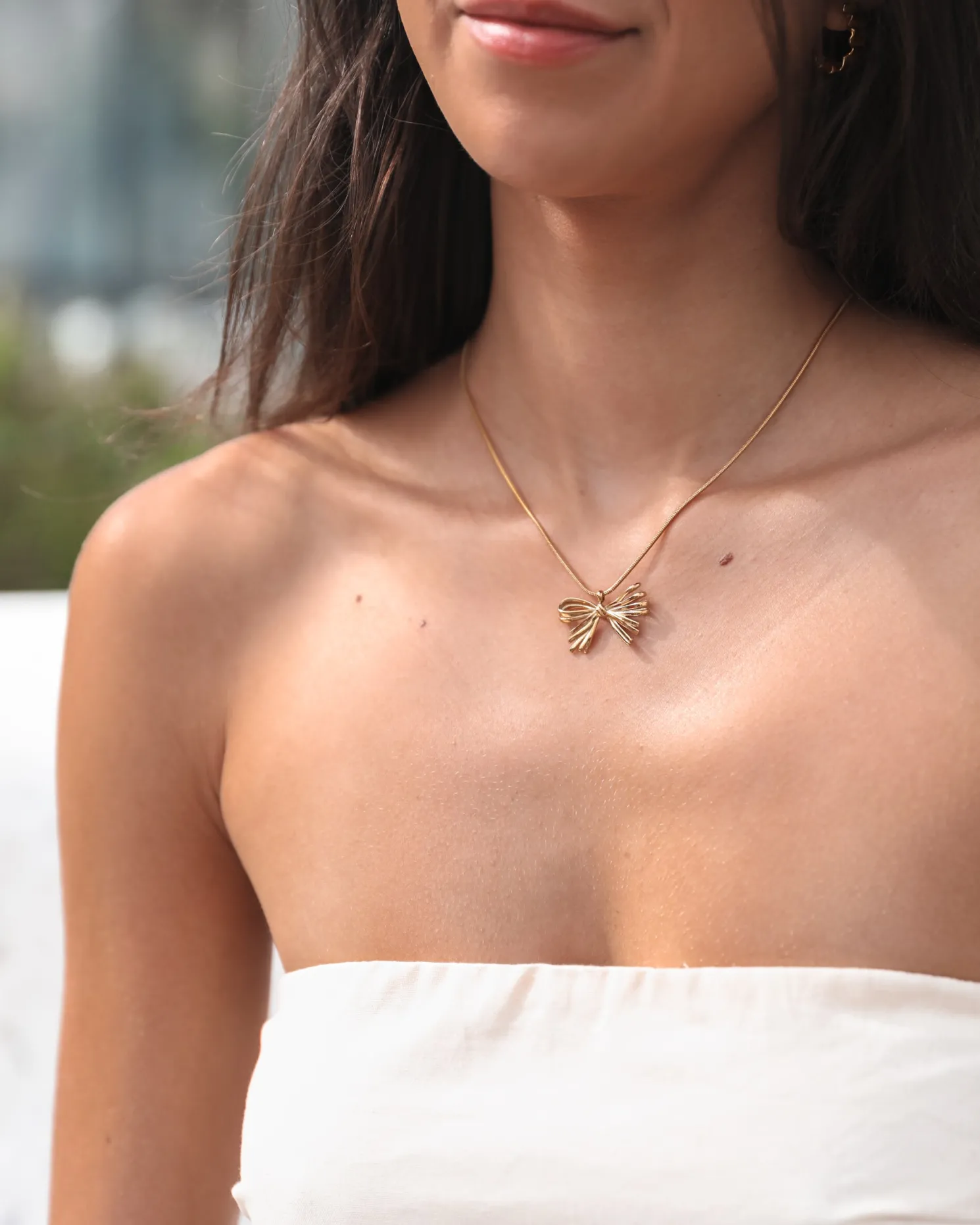 Our Aiden Necklace comes in a gold colour. Dainty yet eye-catching, this stunner drapes beautifully along the neckline. For a romantic feel, match it with a soft knit sweater and pleated skirt!