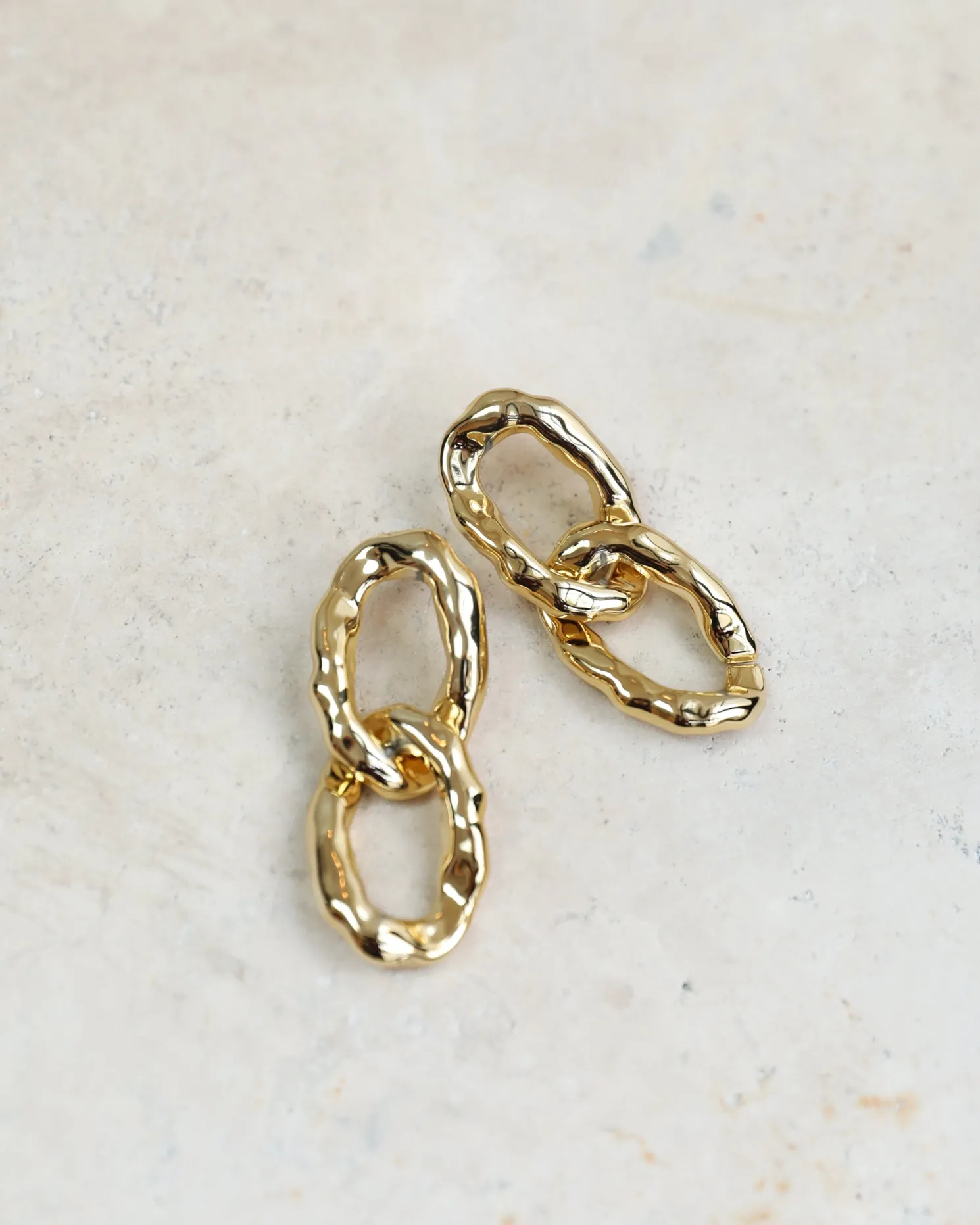 Double the elegance, double the impact. The Chiana Earrings feature a striking figure-8 silhouette crafted in polished gold, creating a seamless blend of modern geometry and timeless sophistication. Pair with a black turtleneck and tailored trousers for a chic office look, or elevate a flowing evening gown!