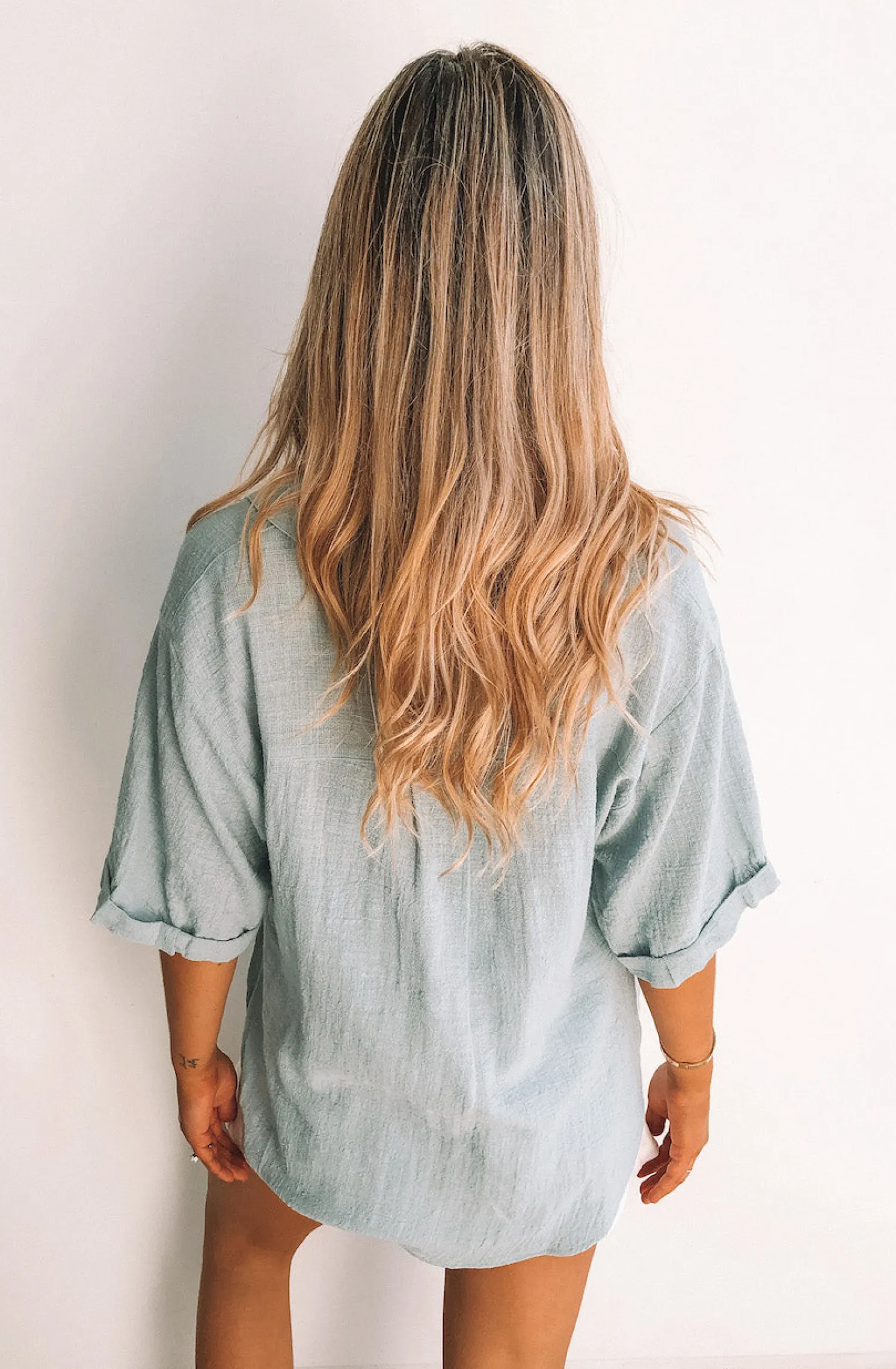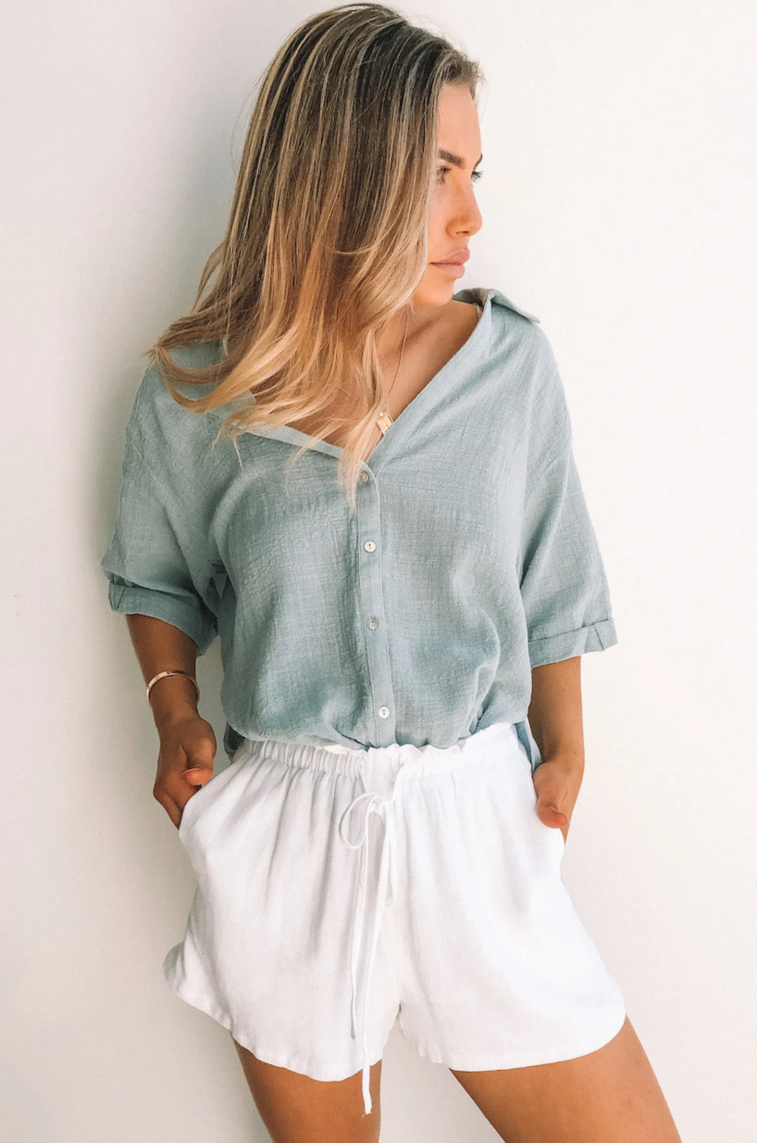 Our Fraise Top is a faded teal with blue-green undertones. It’s a gorgeous medium weight linen material in a relaxed fit that champions breathability and ease. Throw this on as a beach cover, tucked into your fave pair of denim or tied at the front and paired with a pleather skirt. The v-neckline and relaxed fit make this ideal for maternity wear and those hot summer days to come.