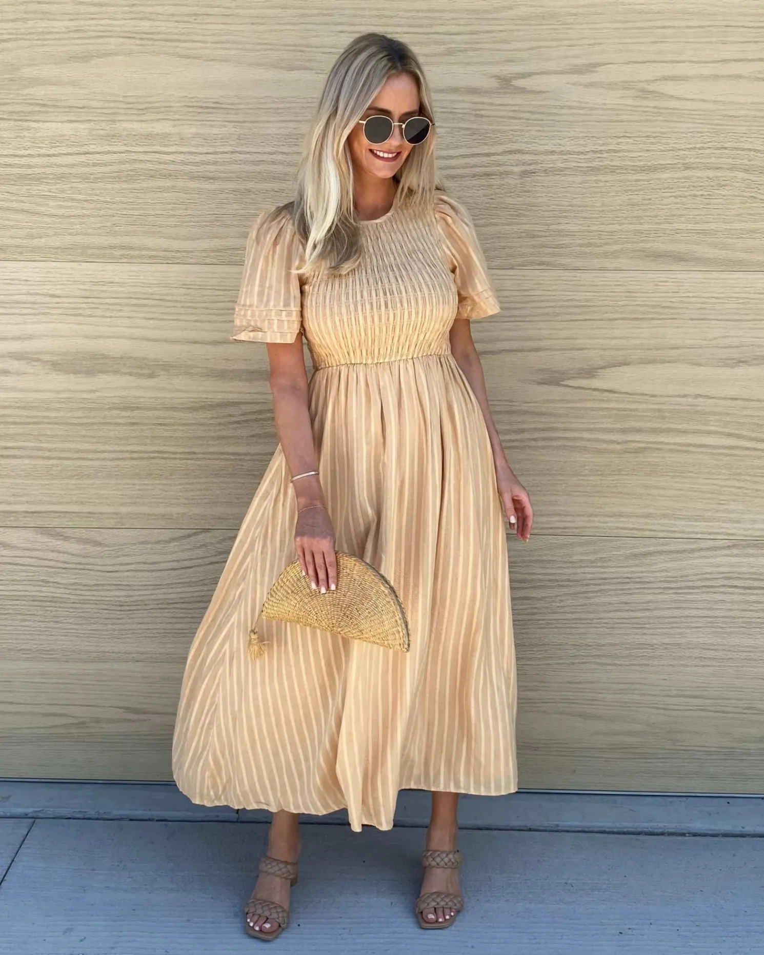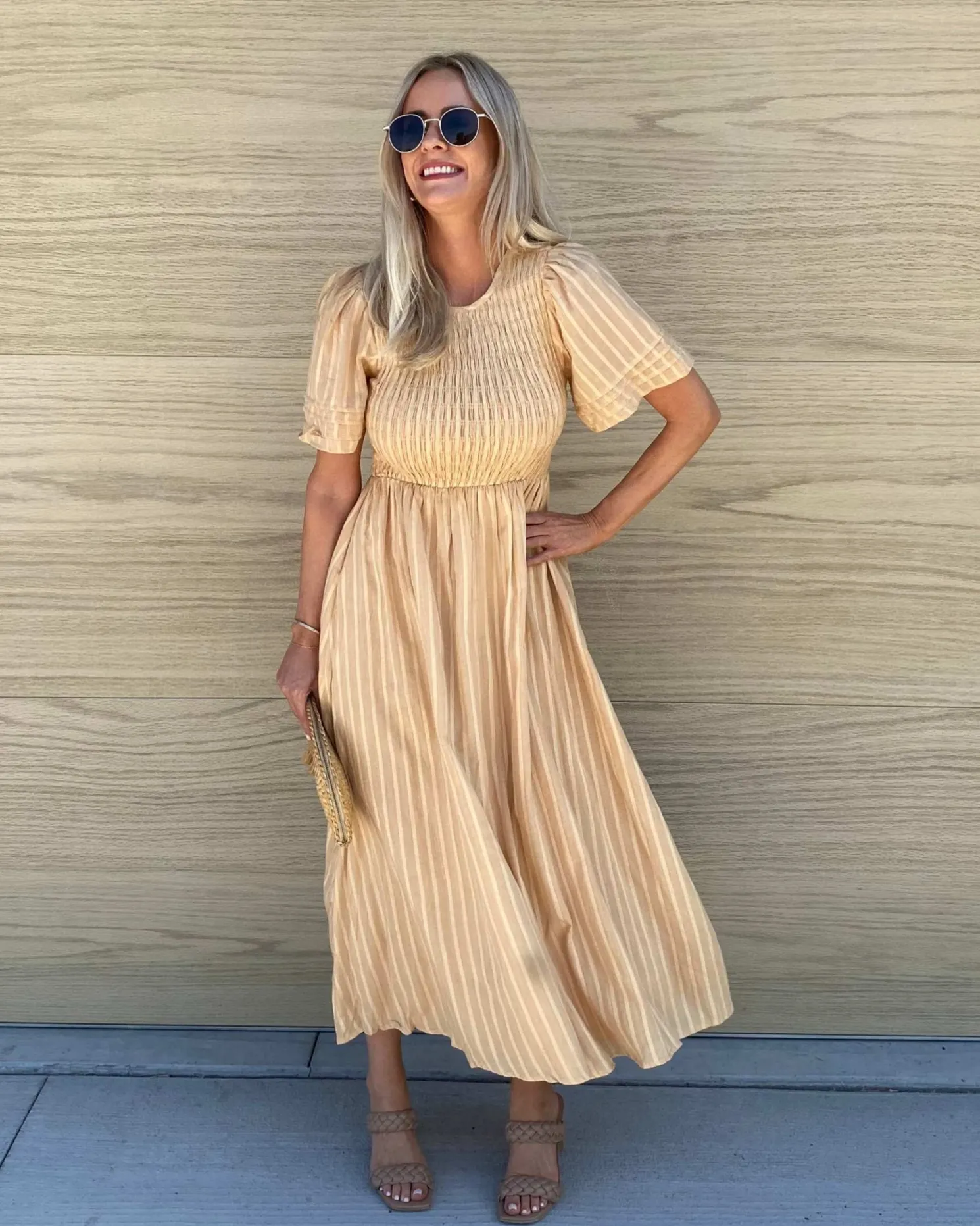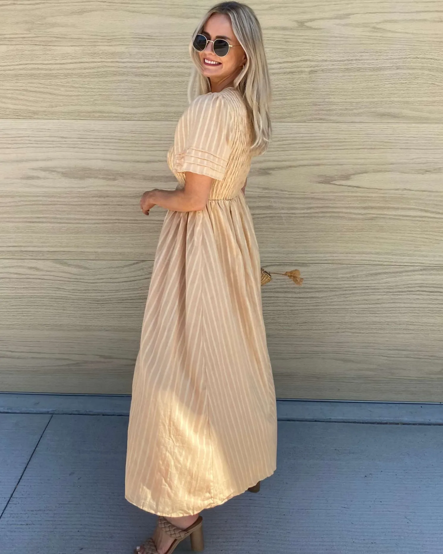 - Key Features: Midi length. Relaxed fit. Round neckline. Short sleeves. Maternity friendly. Lined.