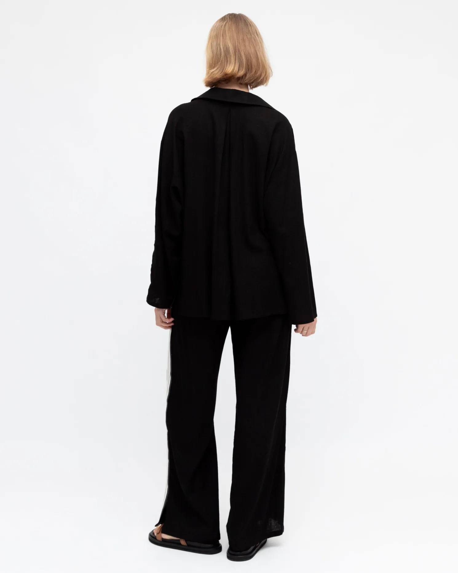 - Key Features: High waist. String. Side slit. Wide leg silhouette. Ankle length hem. Outleg length: size 8 = 103cm, Size 10 = 104cm, Size 12 = 105cm and size 14 = 106cm.