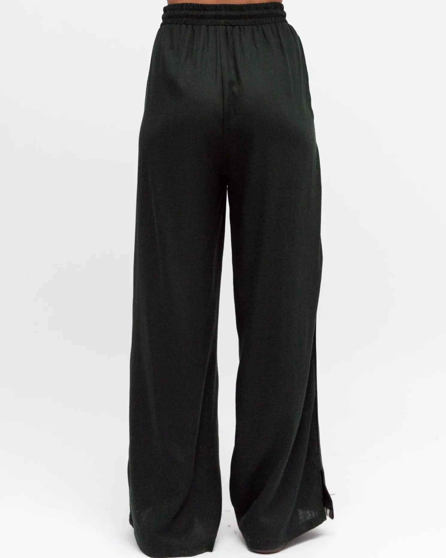 - Key Features: High waist. String. Side slit. Wide leg silhouette. Ankle length hem. Outleg length: size 8 = 103cm, Size 10 = 104cm, Size 12 = 105cm and size 14 = 106cm.