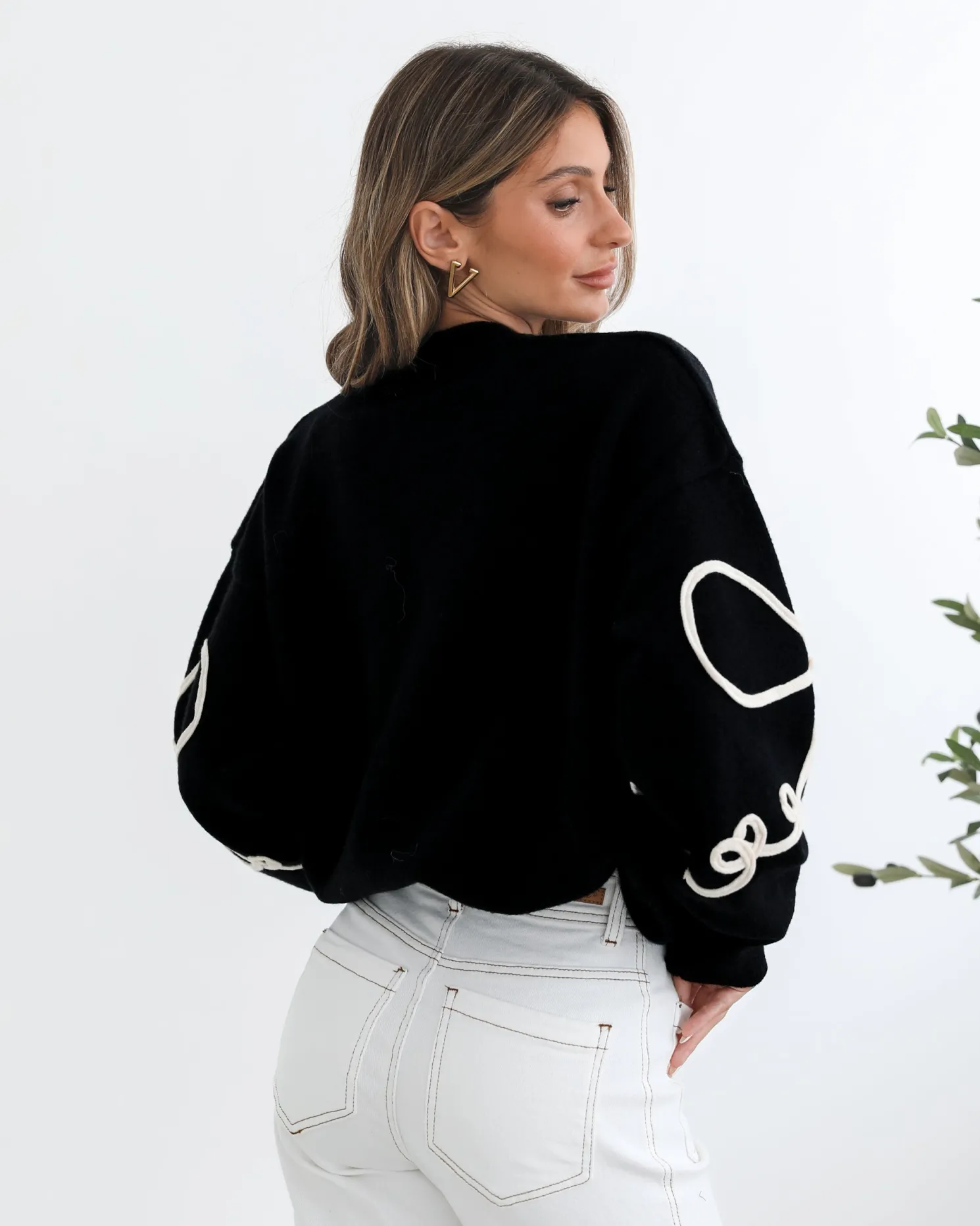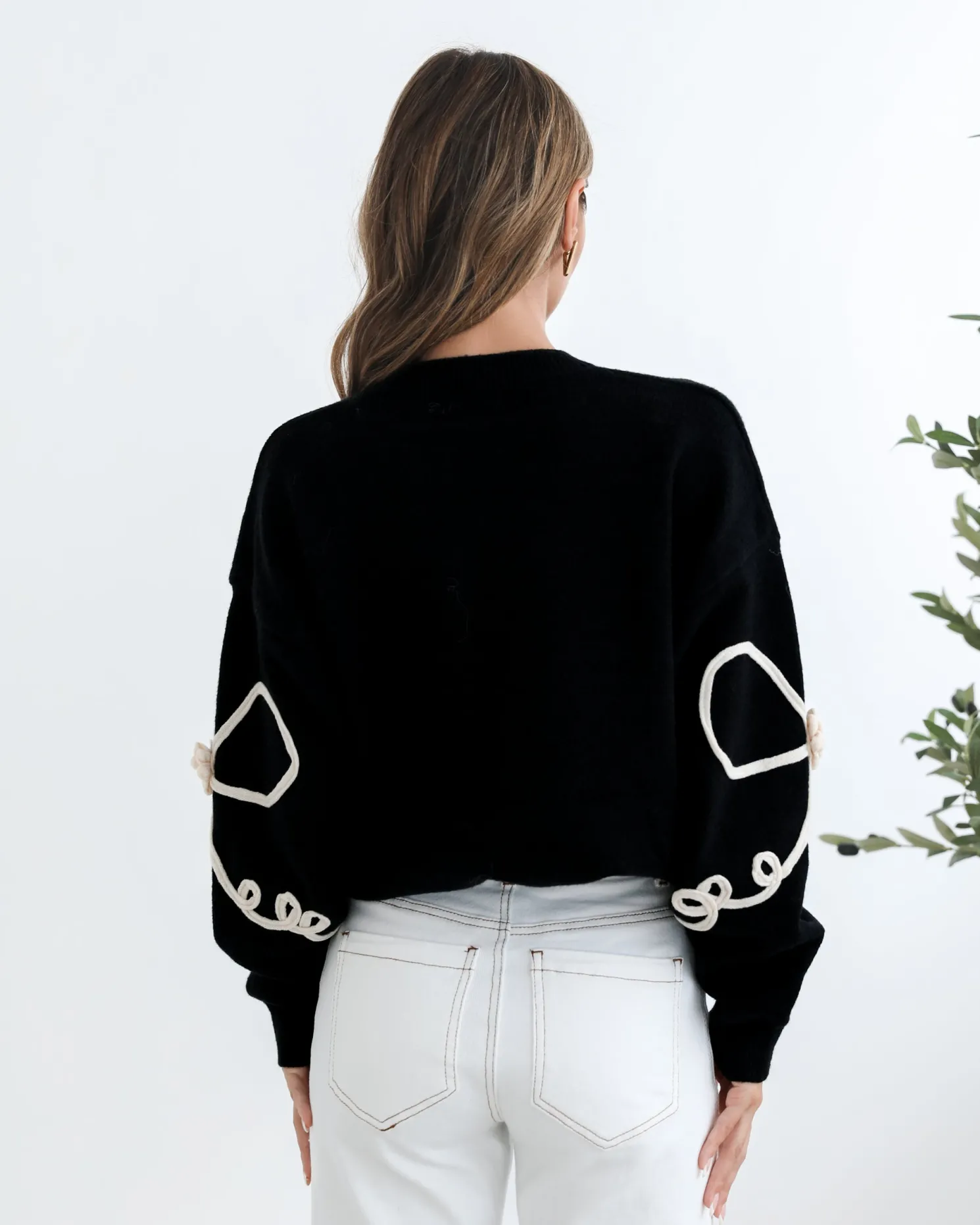 Our Junaelle Knit comes in black and cream tones. Sweet, stylish, and effortlessly charming, this top is designed with a round neckline, long sleeves and contrasting hue bow design. Style it with a pleated mini skirt and Mary Jane flats for a darling, vintage-inspired look!