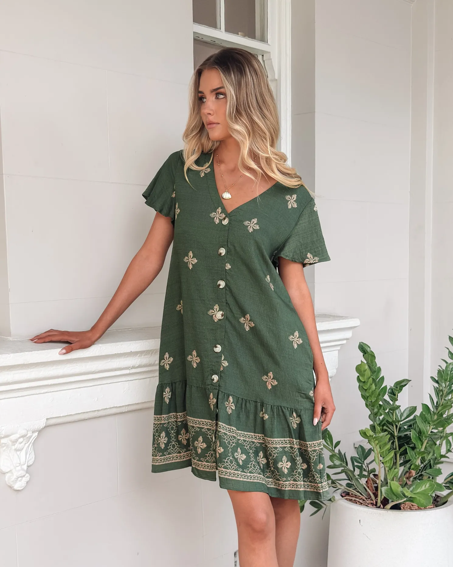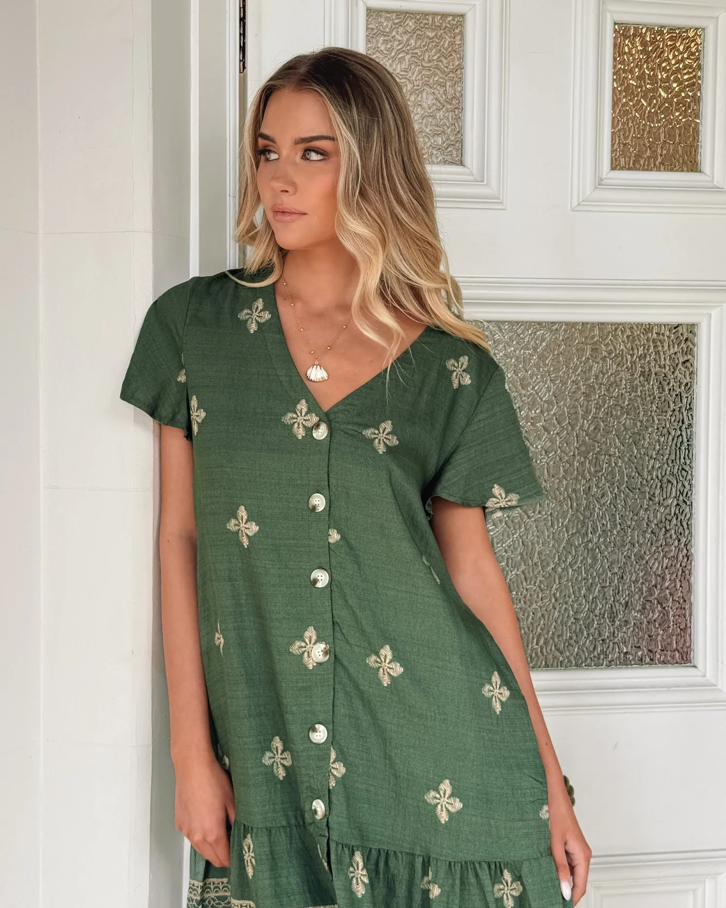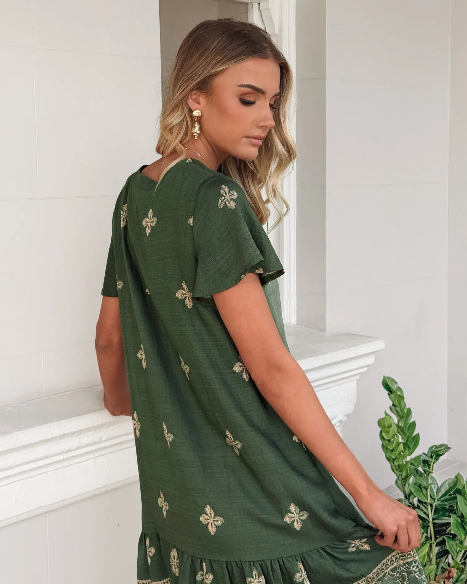 Our Kalea Dress comes in shades of green. That quiet favourite you’ll reach for when you want ease and style, this piece is designed with a v-neckline, short sleeves, side pocket and knee length hem. Match it with a wide-brim hat and espadrilles for weekend markets!