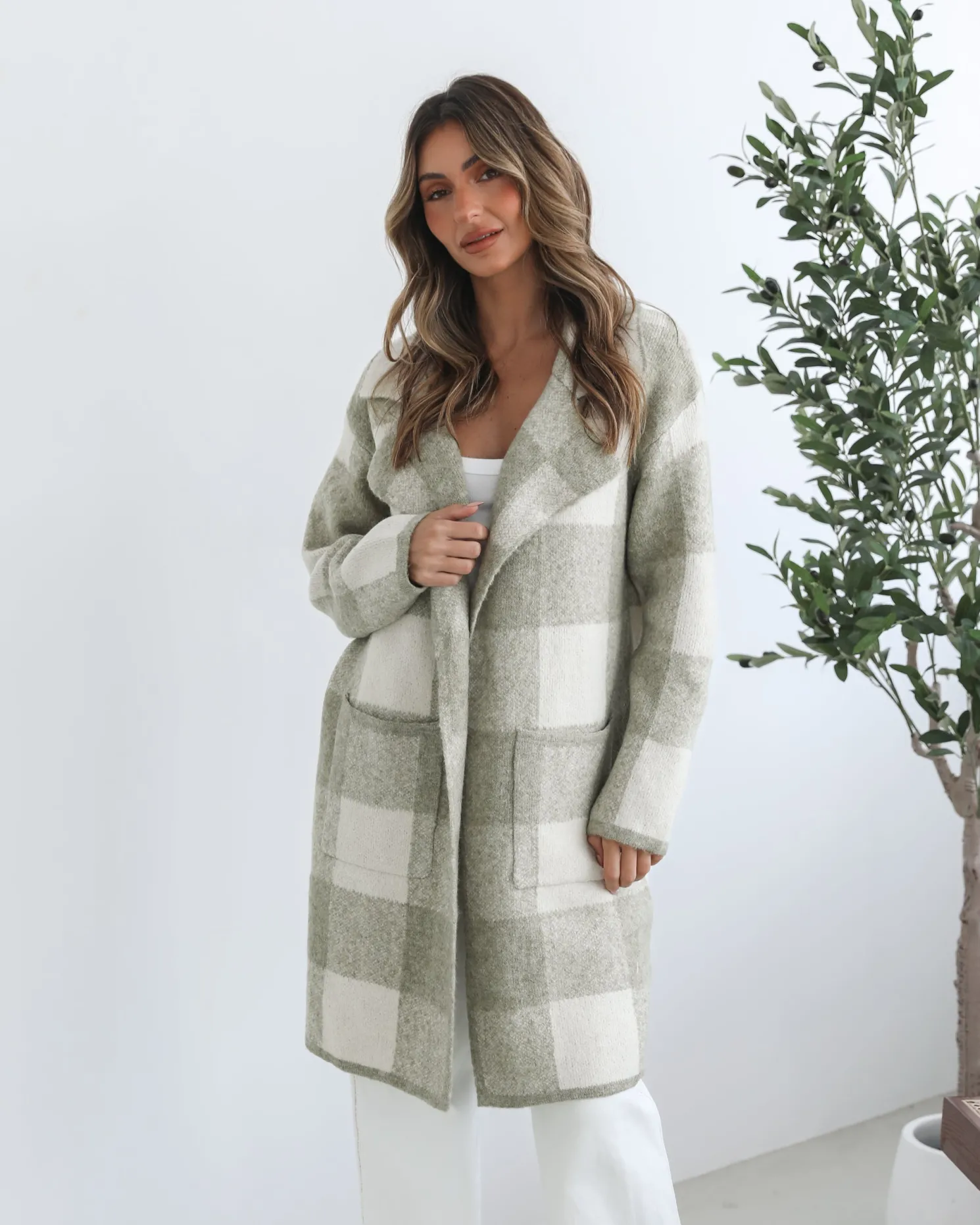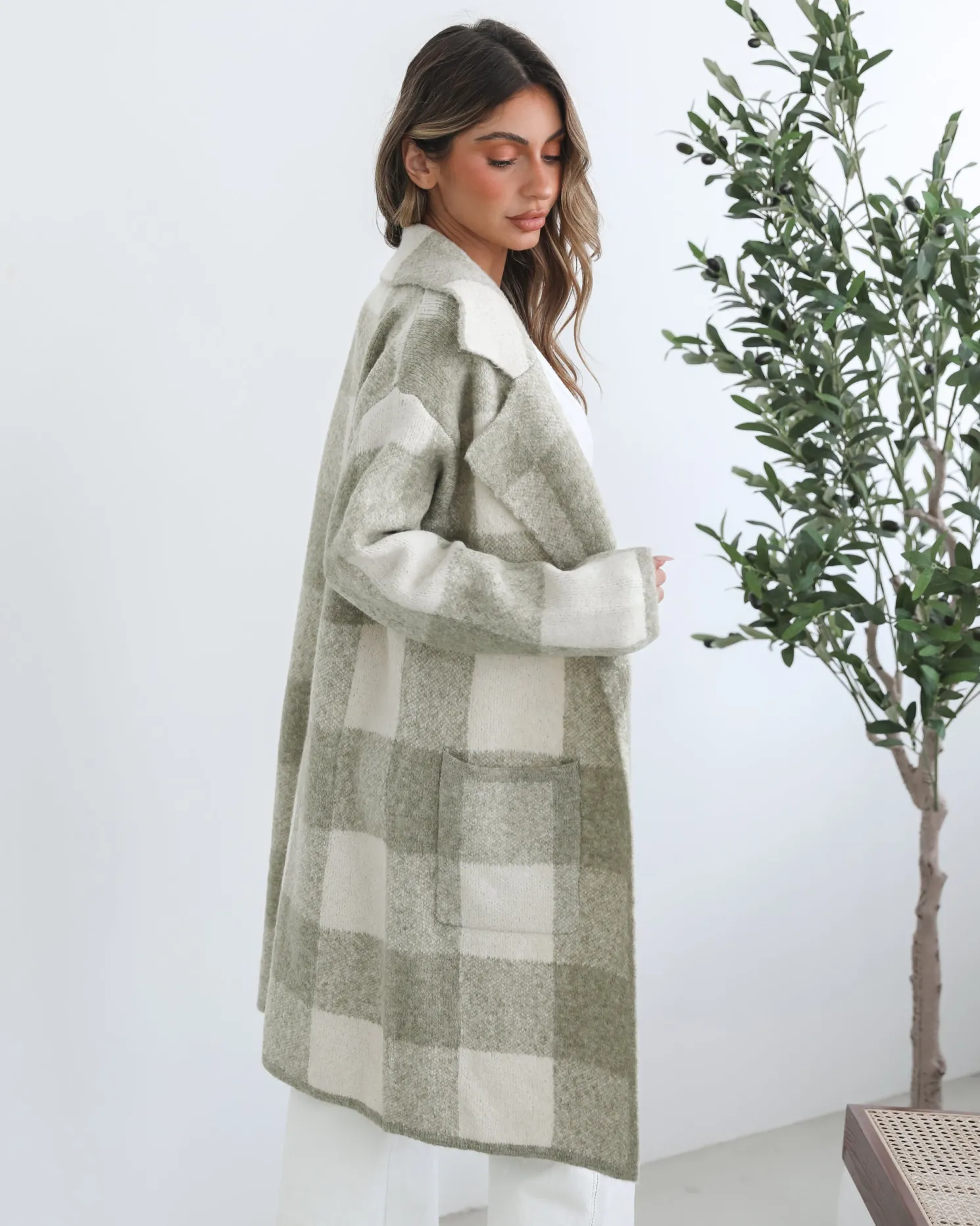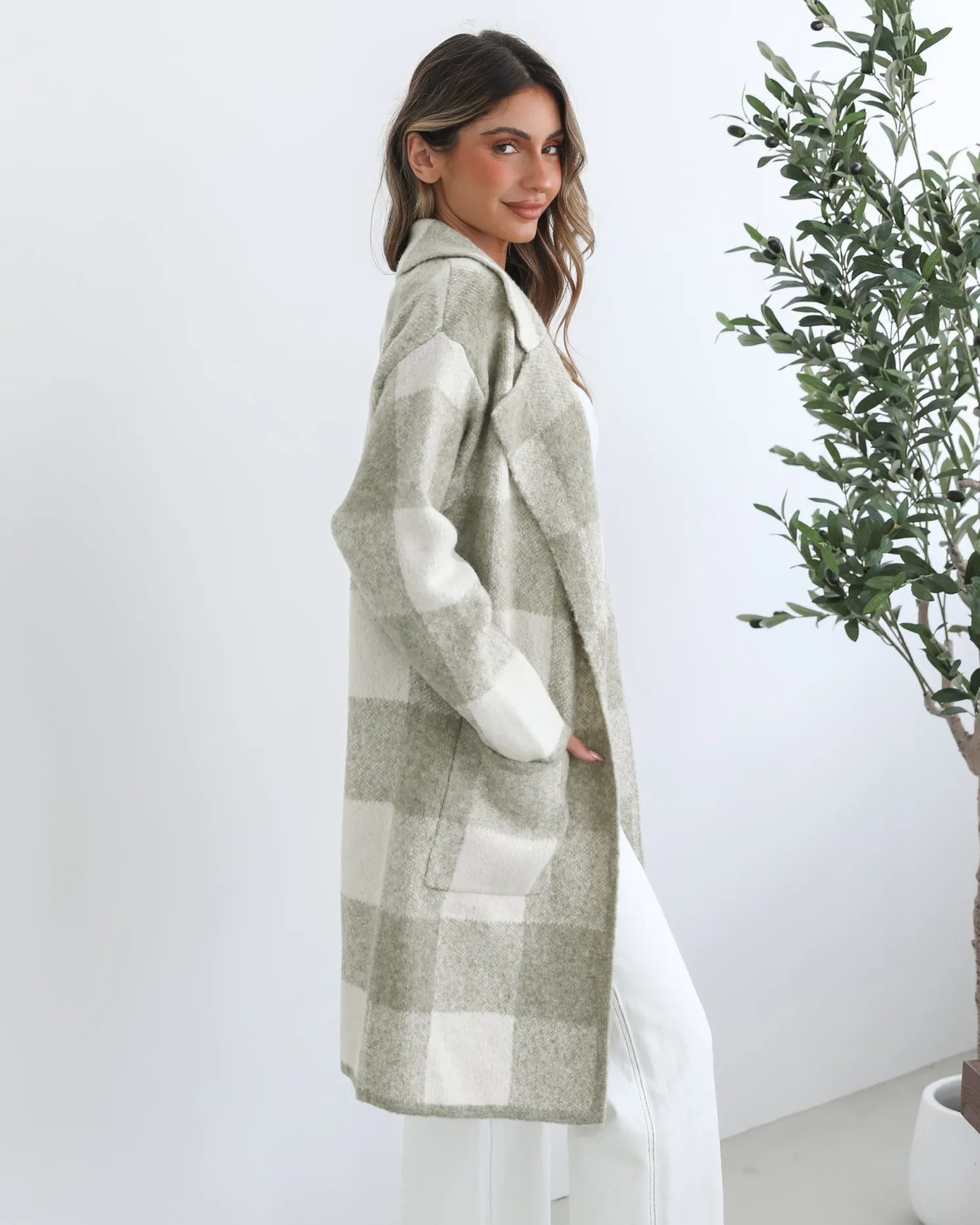 Our Keyasha Coatigan comes in shades of green. Unapologetically fun, this outerwear features a collar, long sleeves, side pockets and open front. Style it with satin slip dress and platform heels for a playful, brunch-to-bar look!