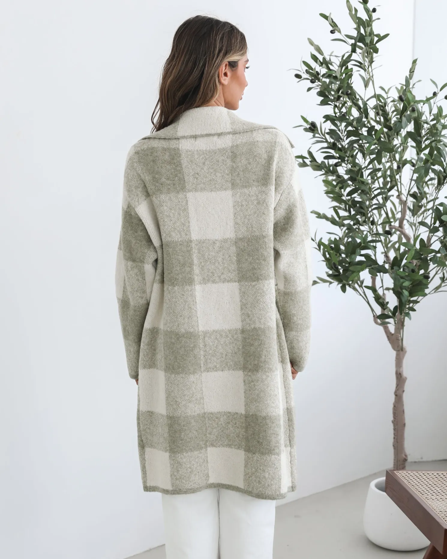 - Key Features: Collar. Long sleeves. Side pockets. Open front.