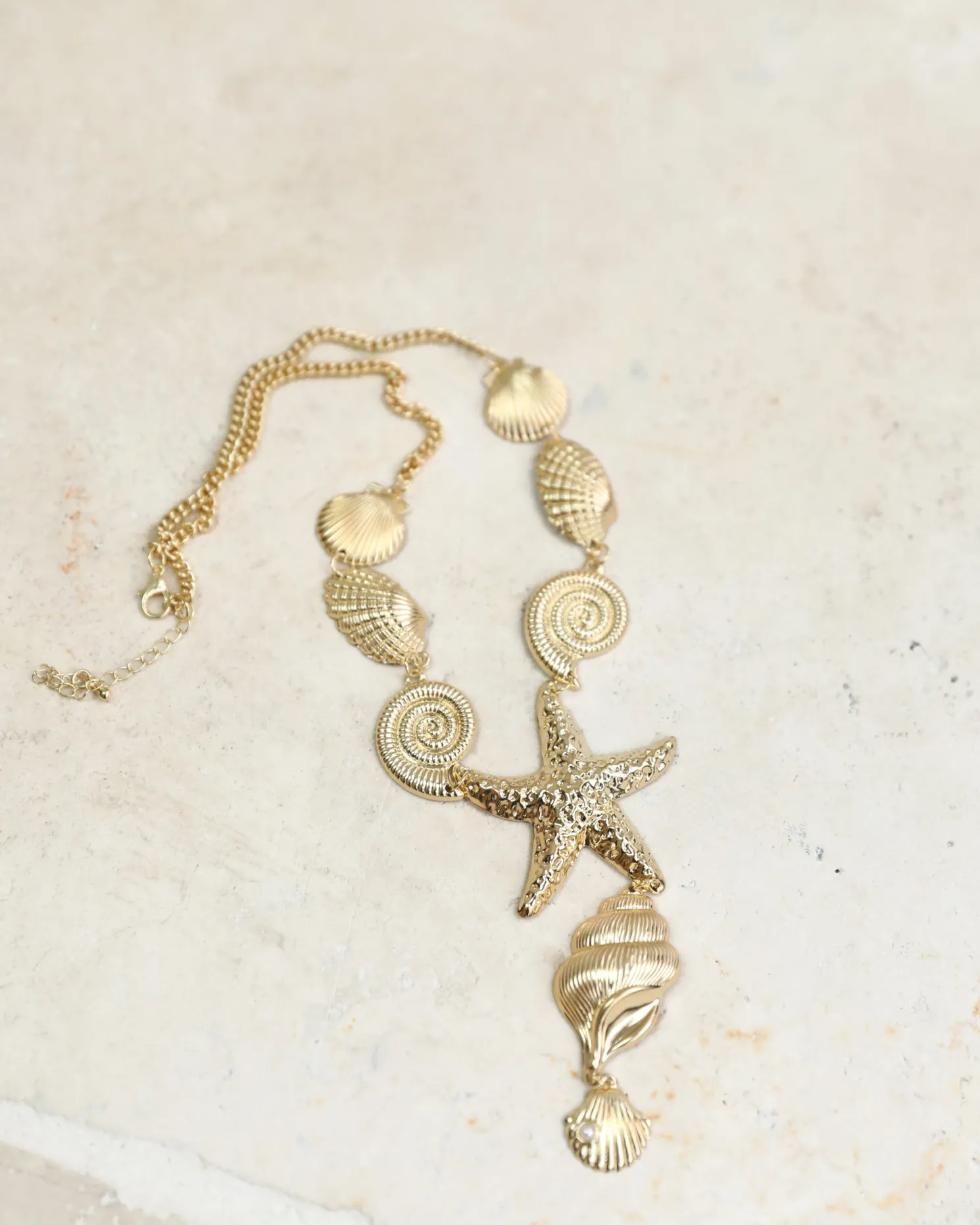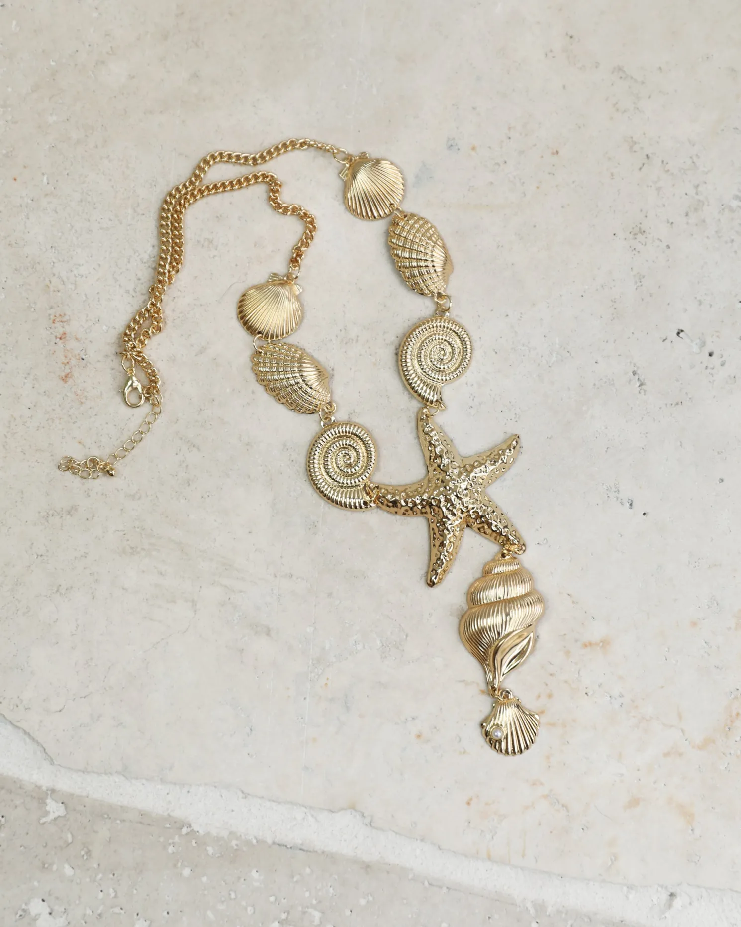 The Larena Necklace captures the essence of underwater wonders with its intricate, ocean-inspired design in polished gold. Style with soft neutrals or bold accents to elevate your look!