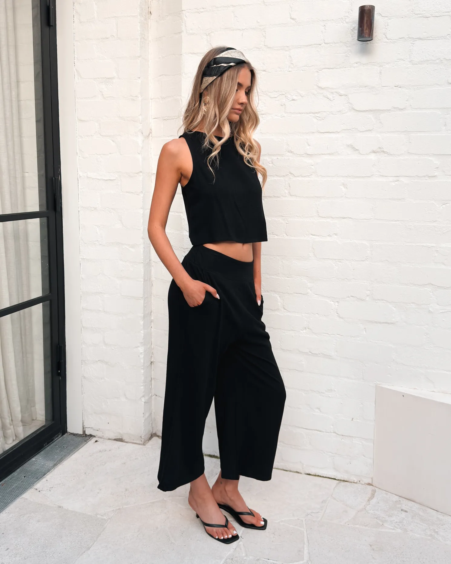Cute, chic and comfy; the basic of your dreams. Perfect for your day out or night in with the girls! Light weight with a flat front waistband and an elasticated panel at the back for extreme comfort. Pair with our chic Lizzo Topfor the ultimate breezy, off-duty style.