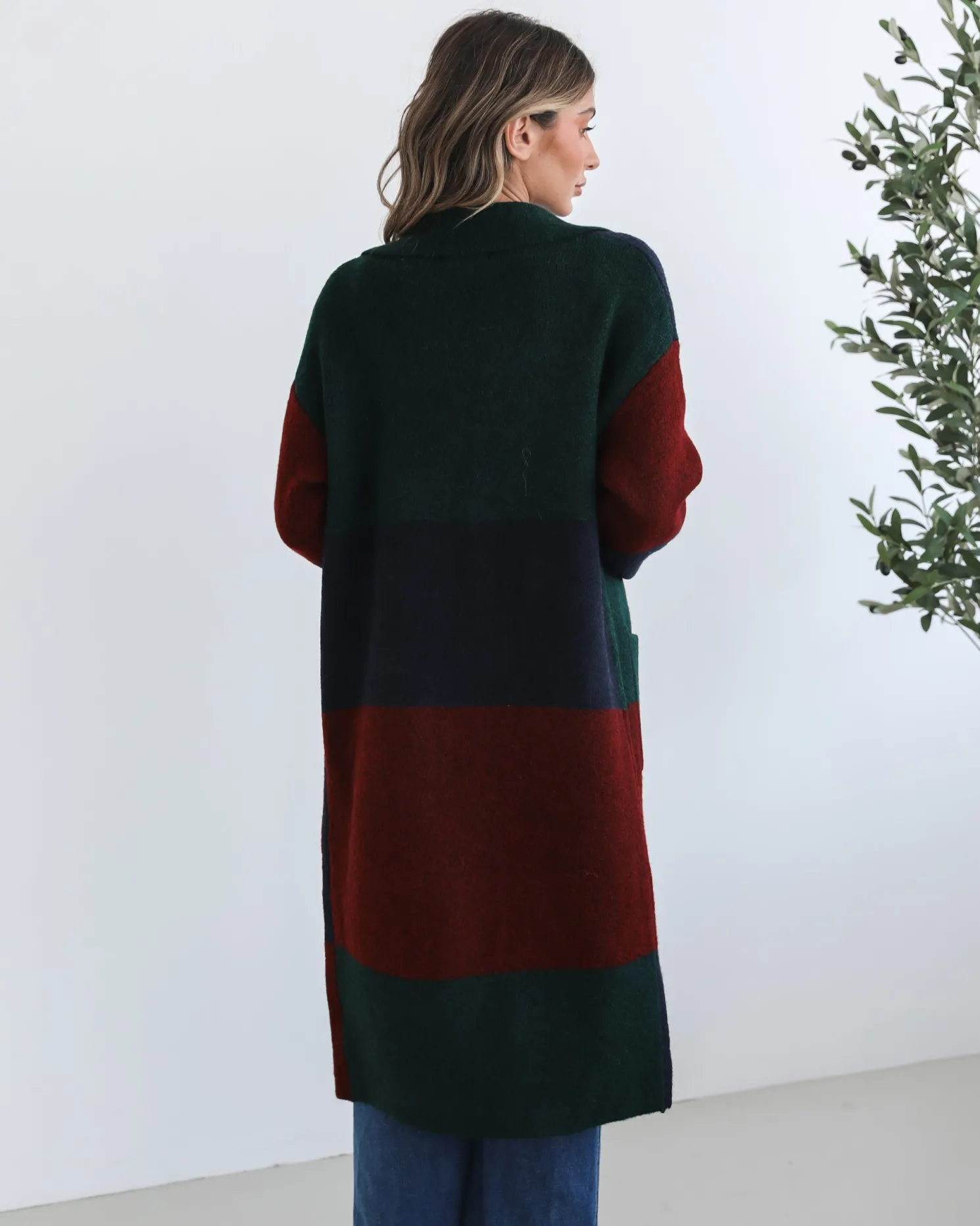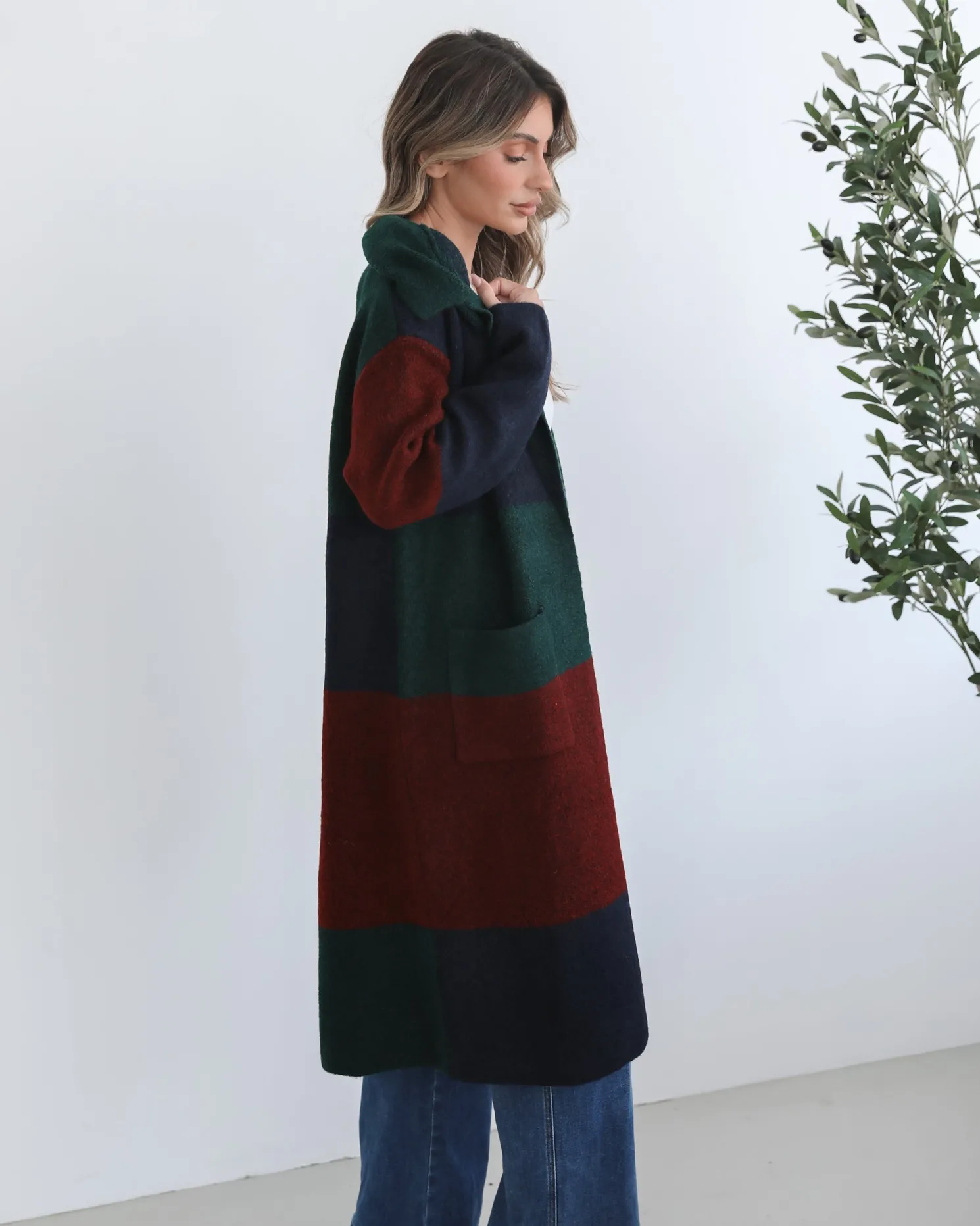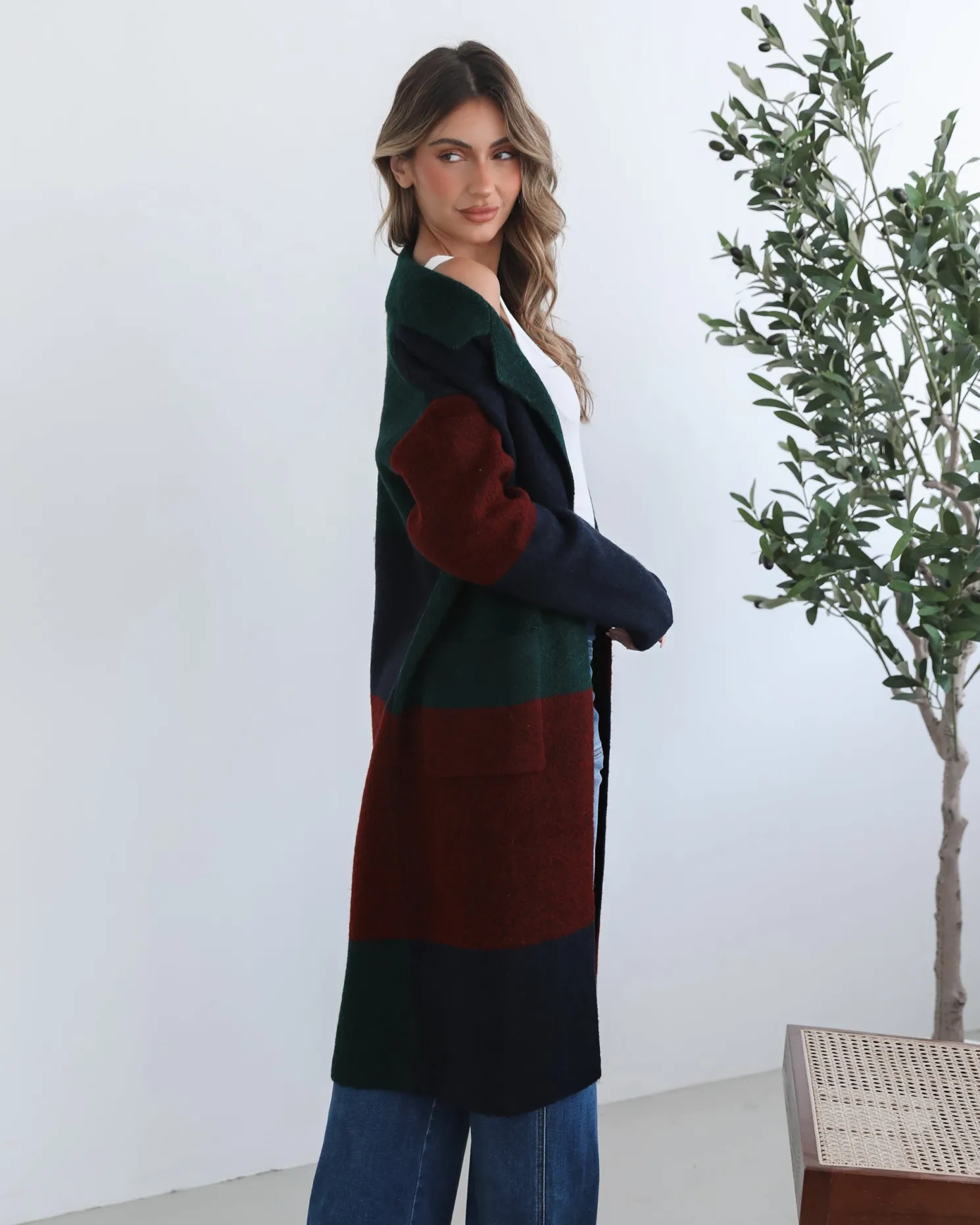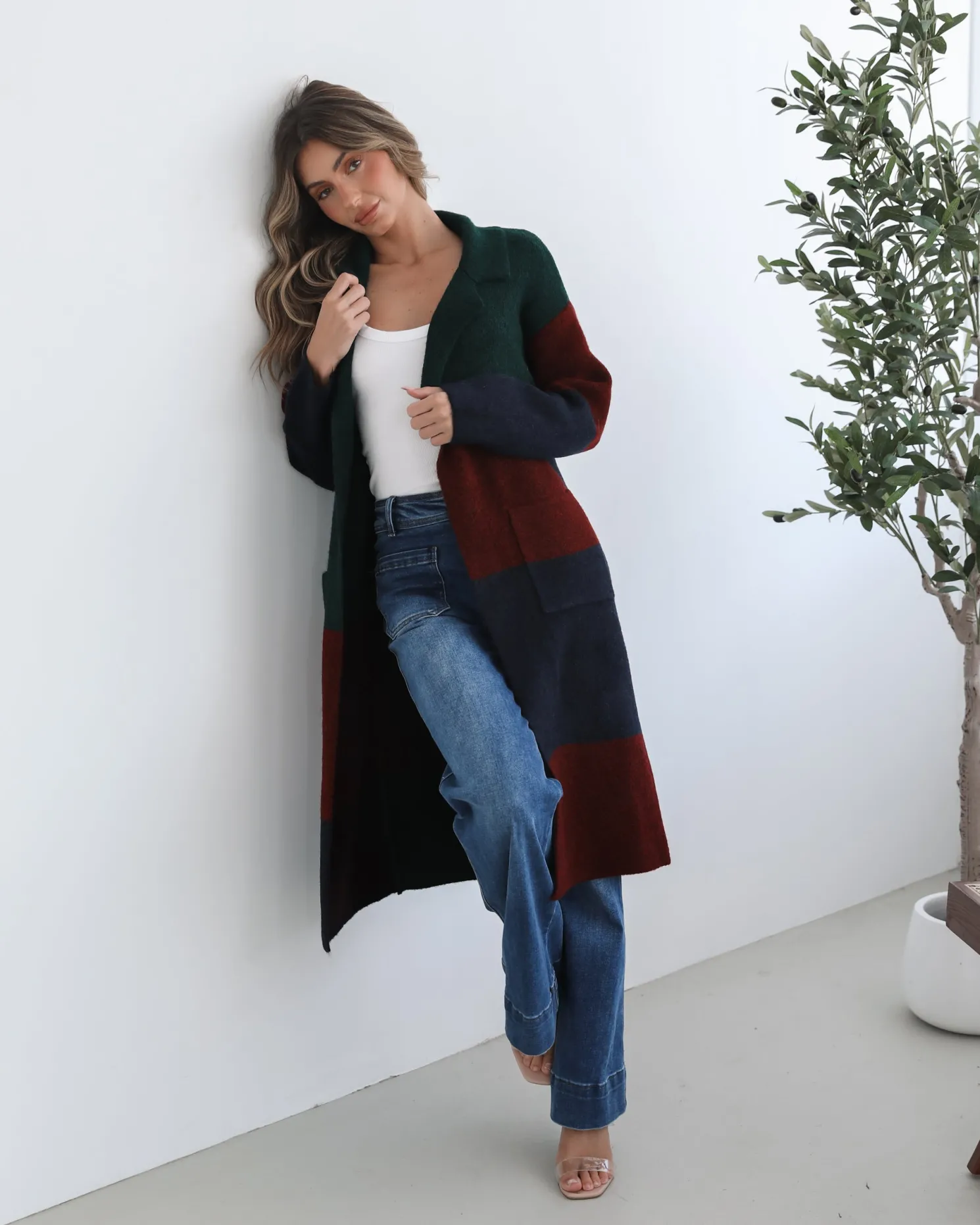 Our Perinne Coatigan comes in shades of red and black. Chic, check and cosy, this outer features a collar, long sleeves, side pockets and long length hem. Team it with a ribbed midi dress and heeled mules for an easy, put-together vibe!