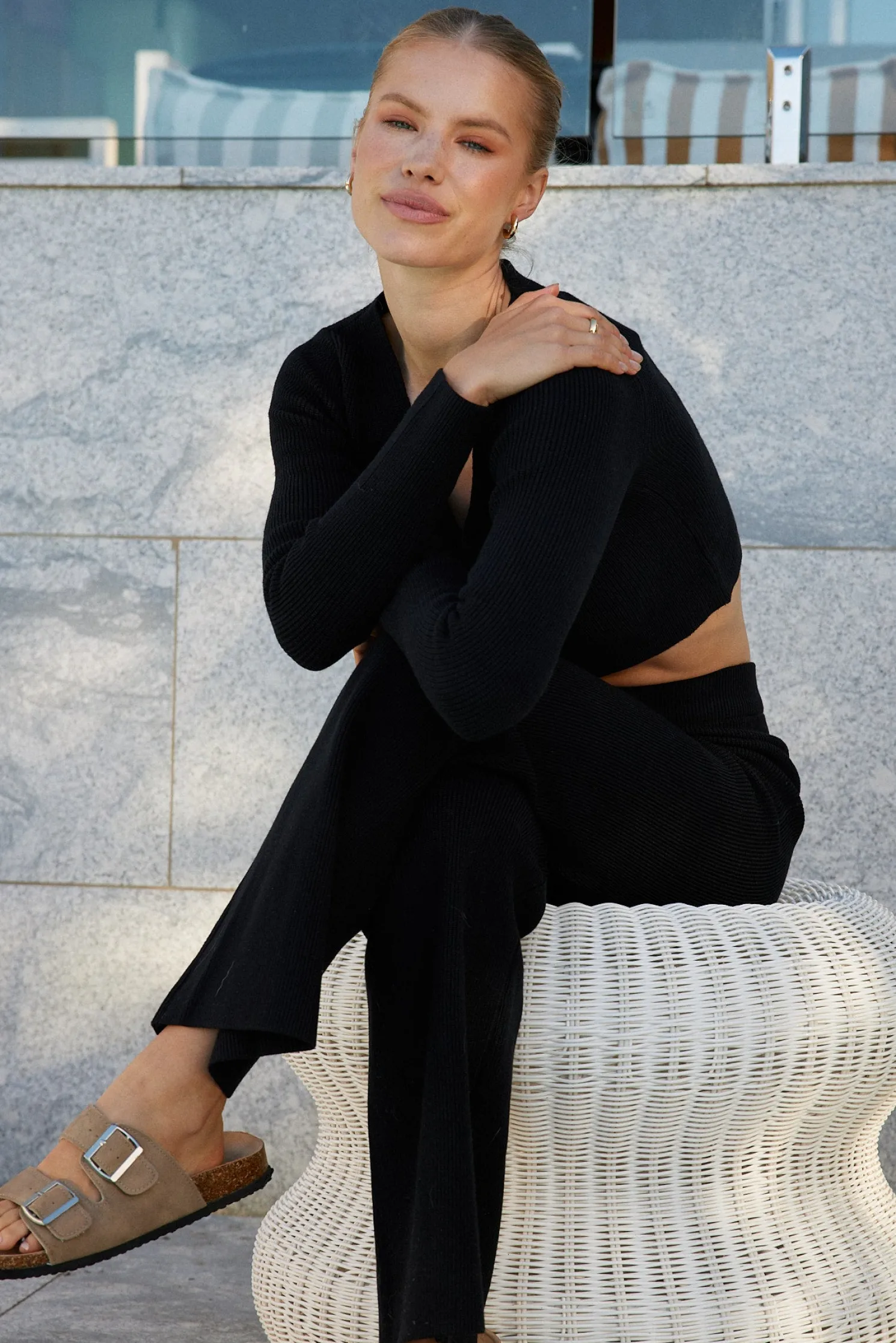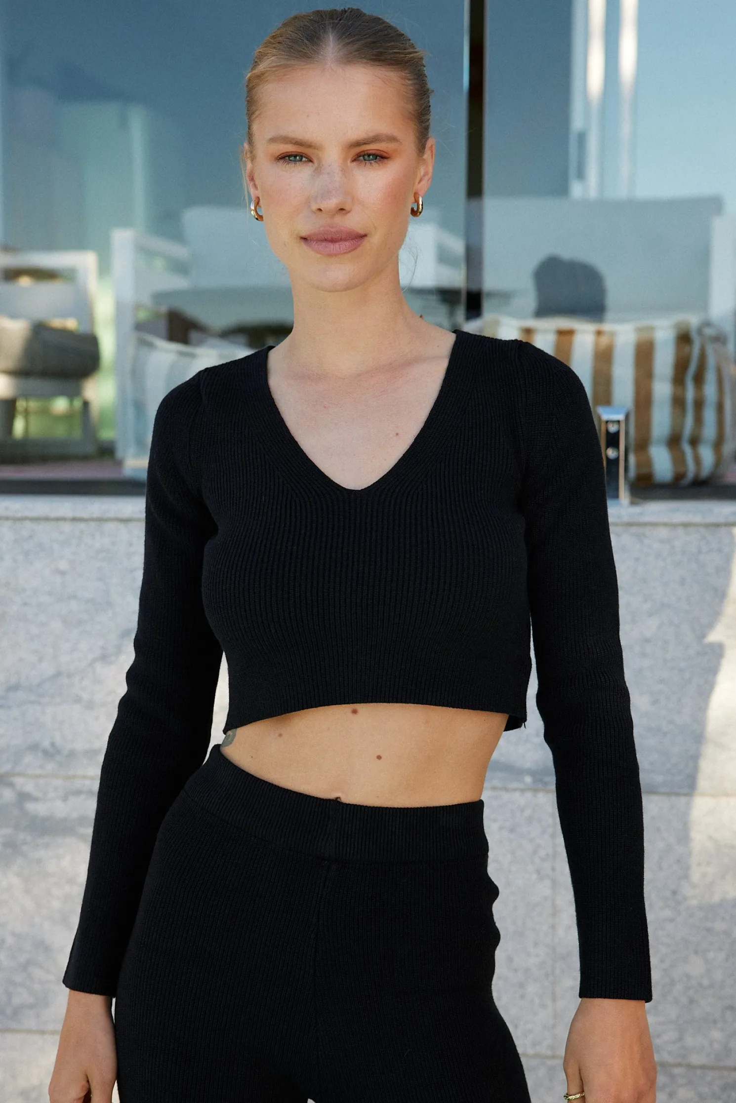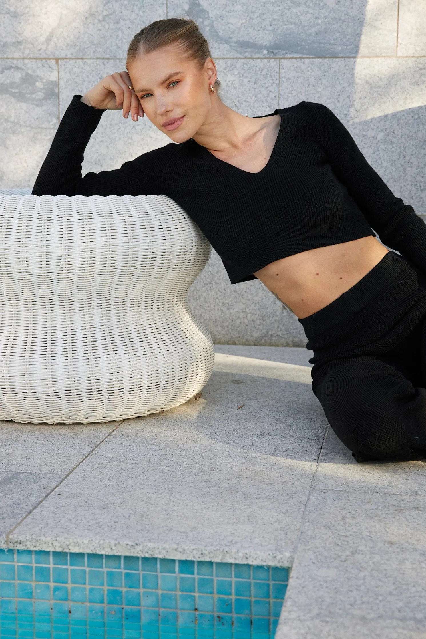 Our Reanne Knit Top comes in a classic black colour. Guaranteed to look chic on you, this top is designed with a soft v-neckline, long straight sleeves and crop length hem. Complete the look with our Reanne Pants!
