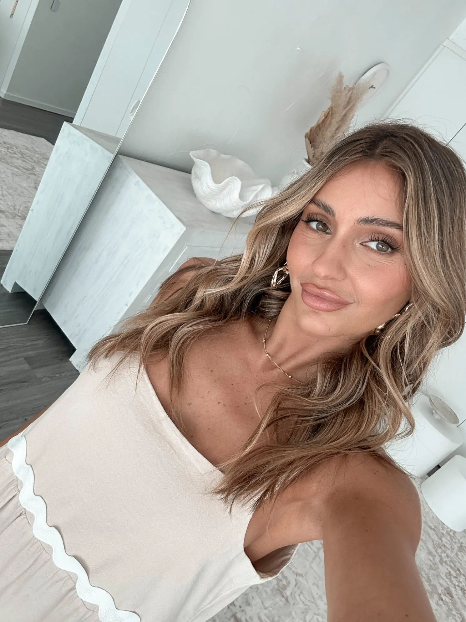 Our Taline Dress comes in shades of beige and white. Flowing beautifully with its relaxed silhouette, wide straps, square neckline and maxi length hem, this piece is perfect for casual outings or sunny adventures. Pair with simple slides, a tote bag, and a sun hat for effortless summer style.