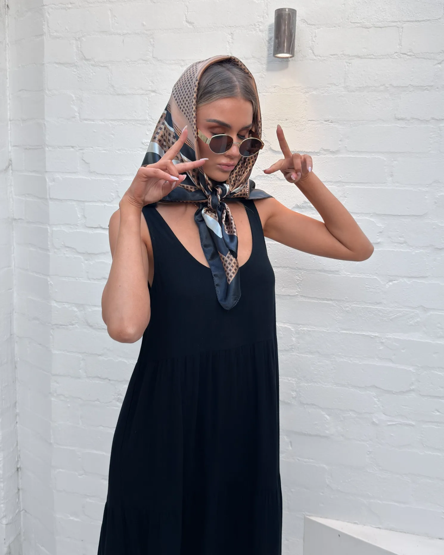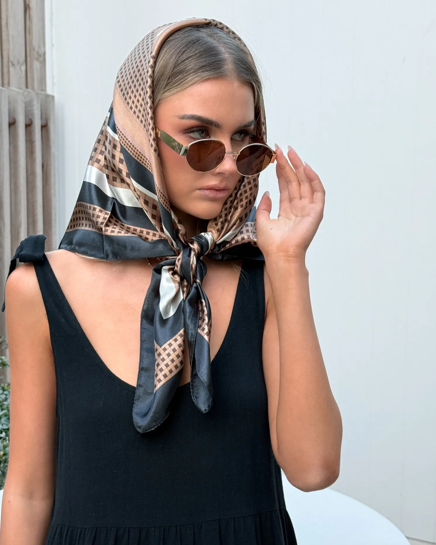 Classic yet unexpected, the Valetta Head Scarf brings a grounded elegance to everyday looks with its rich contrasts and timeless charm. Style with crisp tailoring or soft knits for refined versatility!
