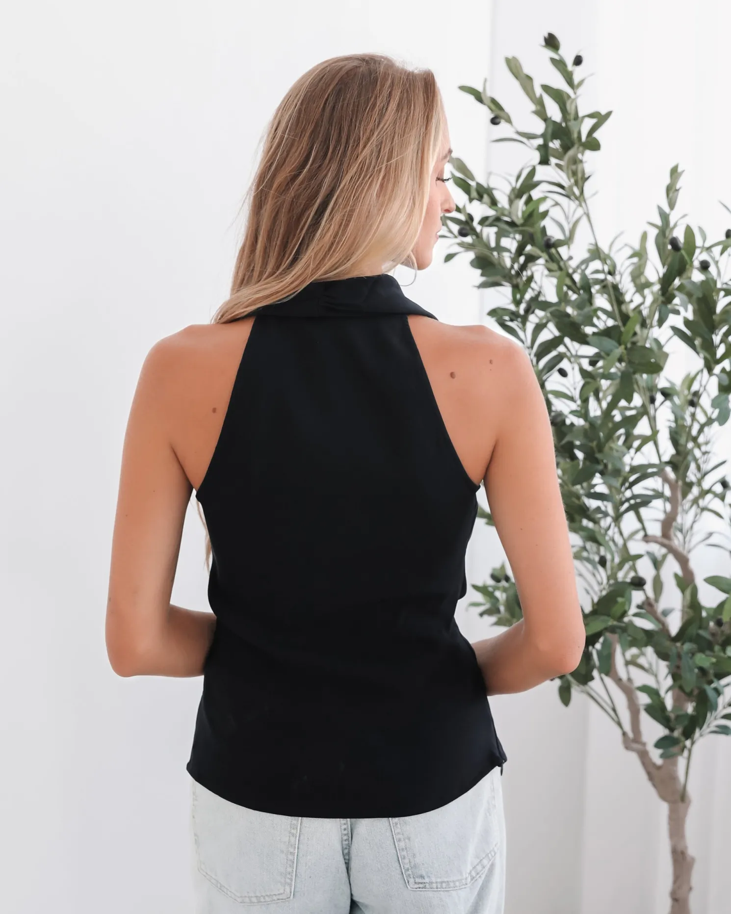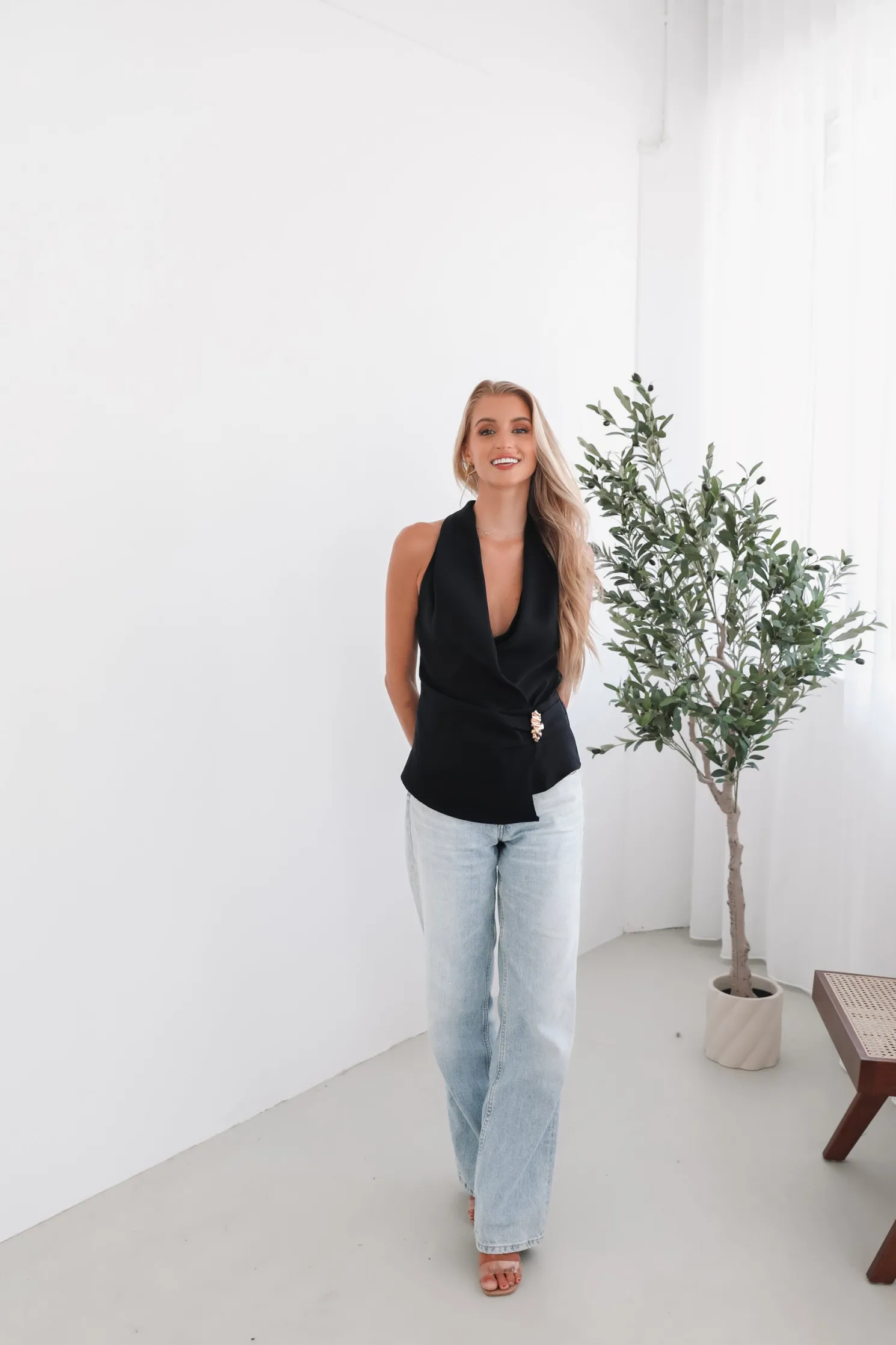 Our Vittoria Top comes in a navy colour. A masterclass in subtle luxury, this stunner features a plunge neckline and overlap bodice. Create a chic, business-ready ensemble by pairing this with a sharp and tailored black trousers!