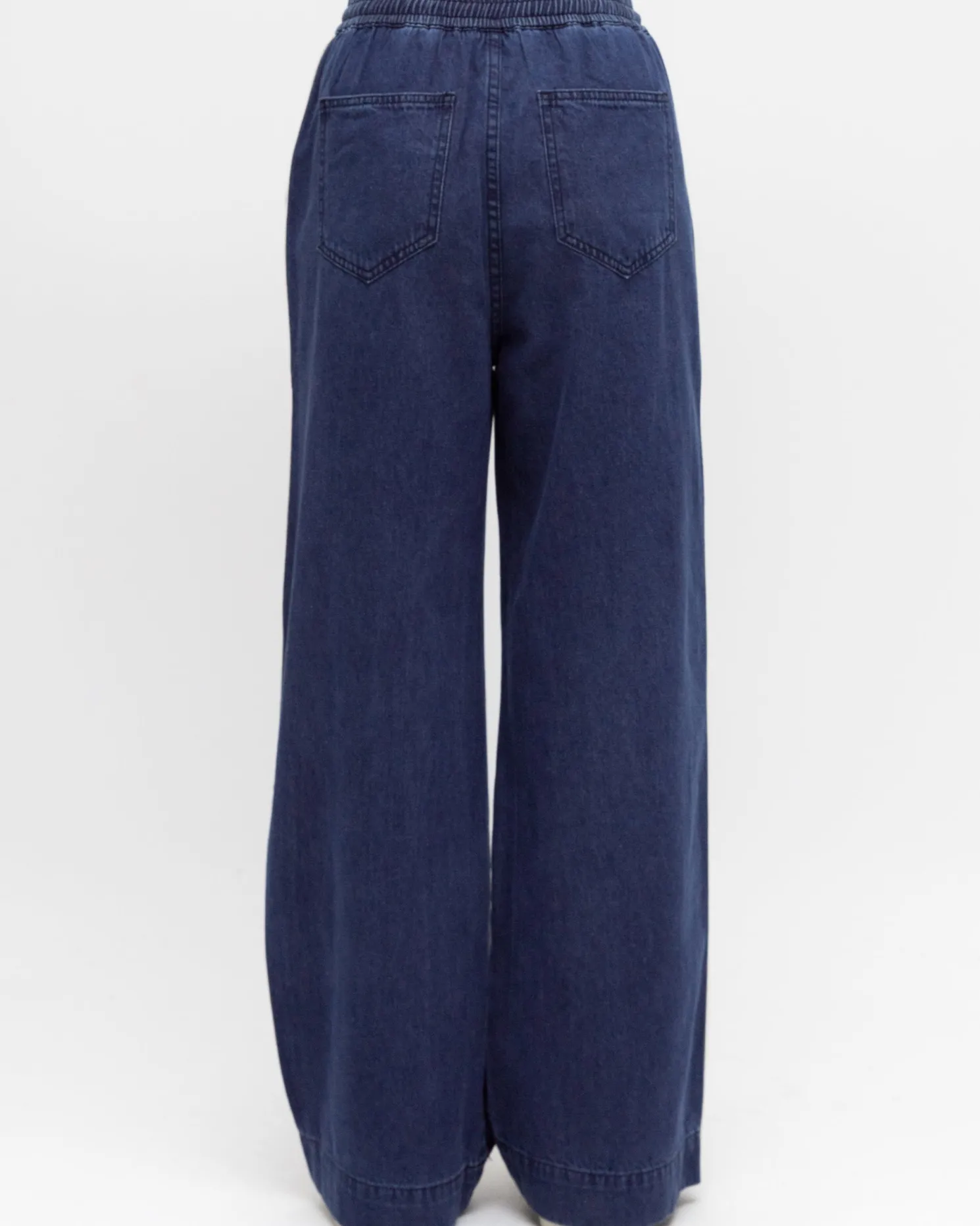 Our Zanea Denim Jeans come in blue and cream tones. Tough enough for errands, cute enough for brunch, this number features a high waist fit, garter and string on waist, wide leg silhouette, side stripe design that elongate and ankle length hem. For an easy everyday style, style it with a tucked-in henley, layered necklaces, and your fave footwear!
